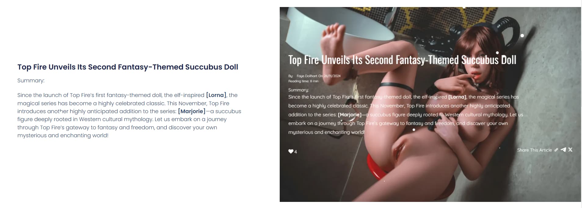 This was the longest article I’ve ever written, requiring extensive research into Western folklore and mythical tales of succubi. I aimed to craft a cinematic narrative experience, blending fantasy and storytelling into a mesmerizing tale.