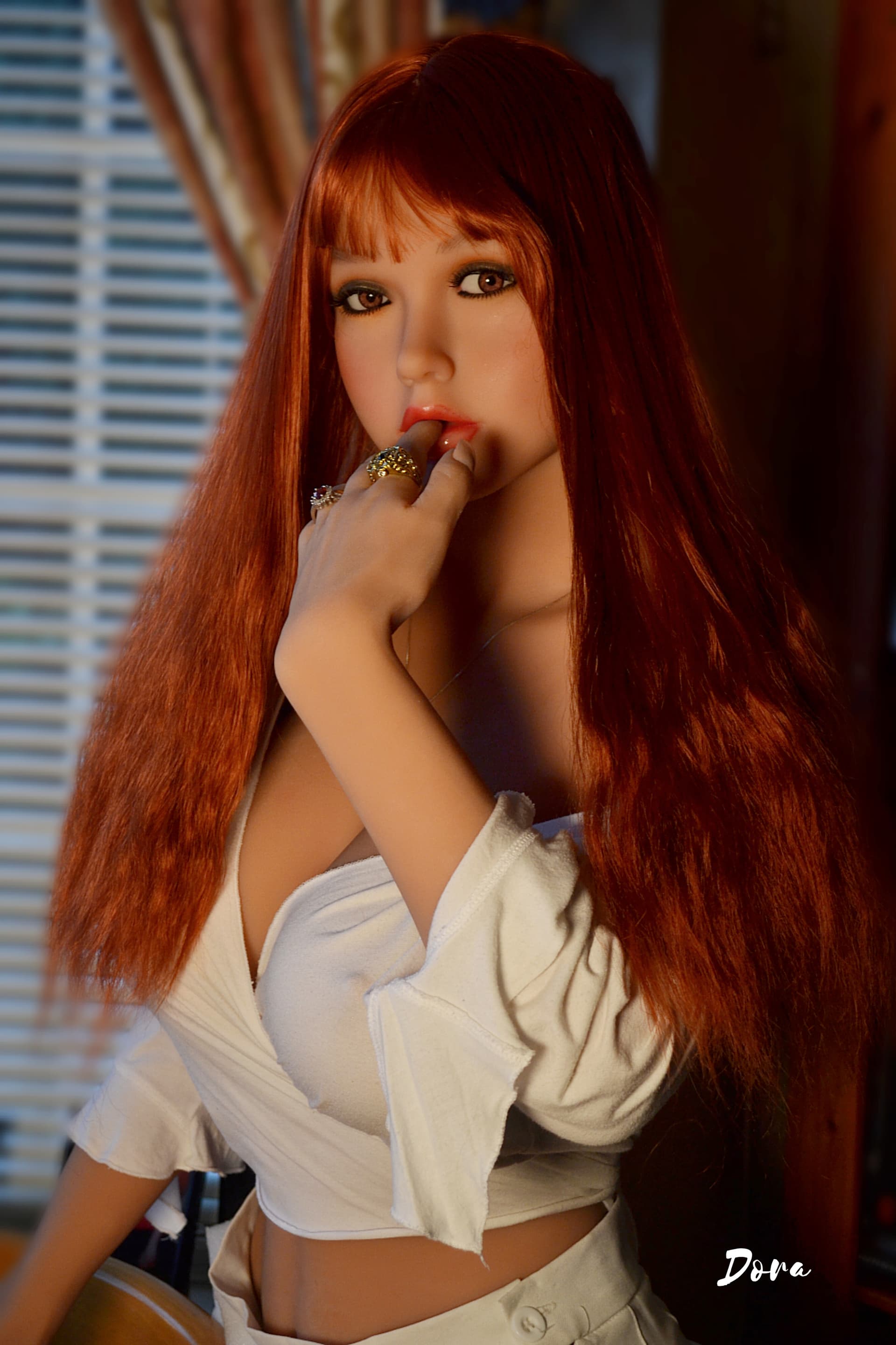 Ok, so, Karrot quite rightly pointed out that I’d neglected to post any pics of Dora here so let’s correct that now! Dora arrived in the summer of 2021 and was another of those happy accidents that can occur if you’re an avid doll collector. I’d ordered a WM162F with head 233 from the excellent Cloud Climax and upon arrival there was a relatively minor issue which I mentioned to Paul who immediately wanted to sort something out for me and offered a few different scenarios and in the end I opted for another body, keeping the one I’d received and just paying for the shipping. As I already had many more heads then bods this seemed like a good idea and I liked the look of the 162F. Move forward a few weeks the new bod arrived along with another head 233! The original 233 had become Donna so once out of her shipping box Dora told me her name and for the next couple of months she was basically a twin of Donna but by then I’d already caught sight of Karrot’s intoxicating Maddie, rocking her WM158G bod and the more I looked at her the more I thought Dora could possibly pull off a similar look seeing as we already had a 158G here! It must have been around the end of 2021 that she switched to the 158G and Amy (who had arrived a few months earlier) snaffled Dora’s 162F. Then, along with a nice long, copper red wig, she looked more at home and also carved out a special place in my heart, spending more time than I deserved as my bed buddy!
