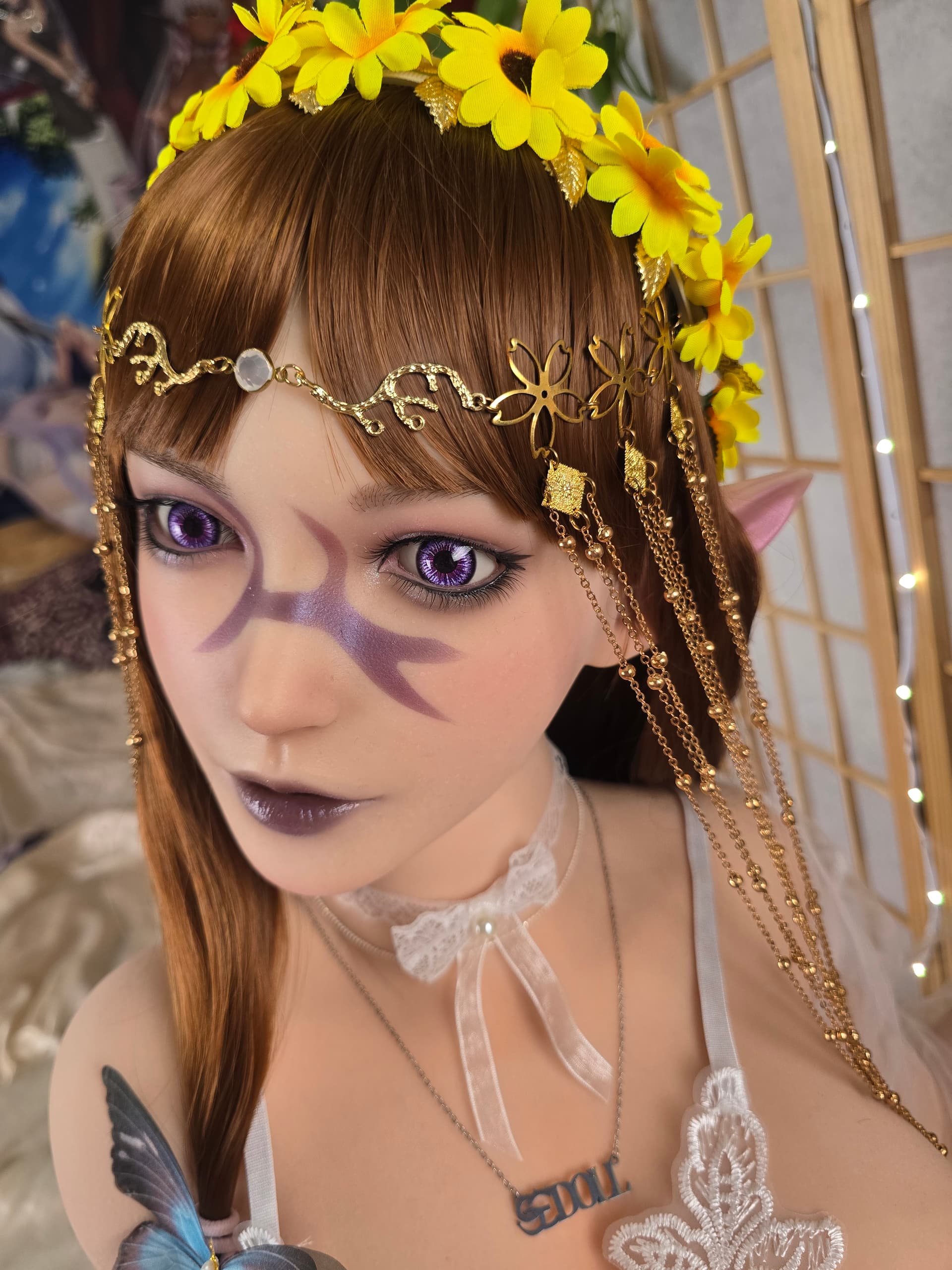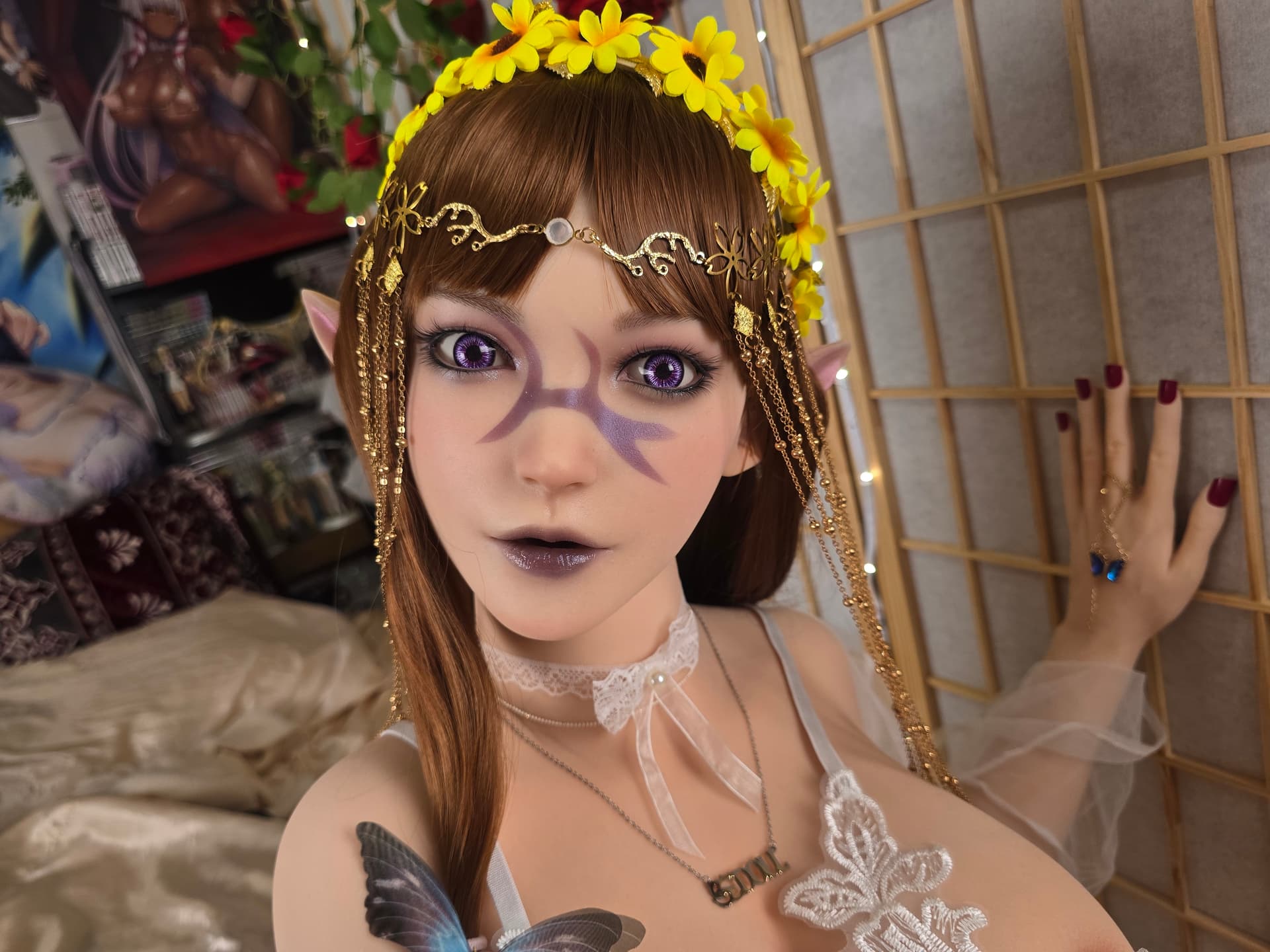 Haha, she’s not your typical Dark Elf with a sexy milk chocolate body. She is a mistress of the Dark Arts, conjuring her magic through communing with malevolent higher beings. Although she originally stood in opposition to me, the summoned Hero, due to being shown compassion and mercy, she ultimately harbored feelings for me. Though her wicked nature escapes her act of modesty at times, she has turned over a new leaf. Her goal is not destruction no longer, but to carry and give birth to a child of mine she works very hard to make sure it happens.