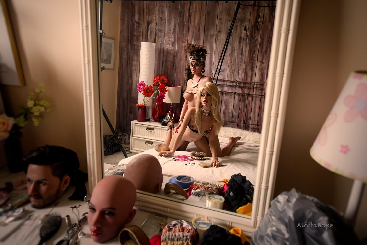When I 1st saw this photo I was shocked that a rig like that could support the weight of a doll (brain stuck in RealDoll mode) then I realized you were likely using the stands and bar as the “3rd point of contact” to facilitate the free standing pose. Am I correct in that assessment, or is there actually any substantial weight load on the overhead bar?