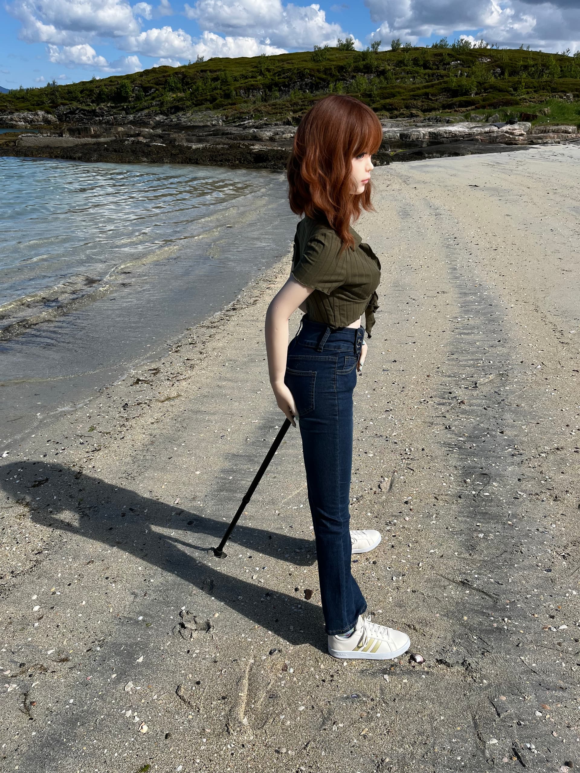 For those who wanted to know how Mariko could stand freely at the beach - she did not, she had a third leg, well hidden by the perspective. A walking stick can be helpful