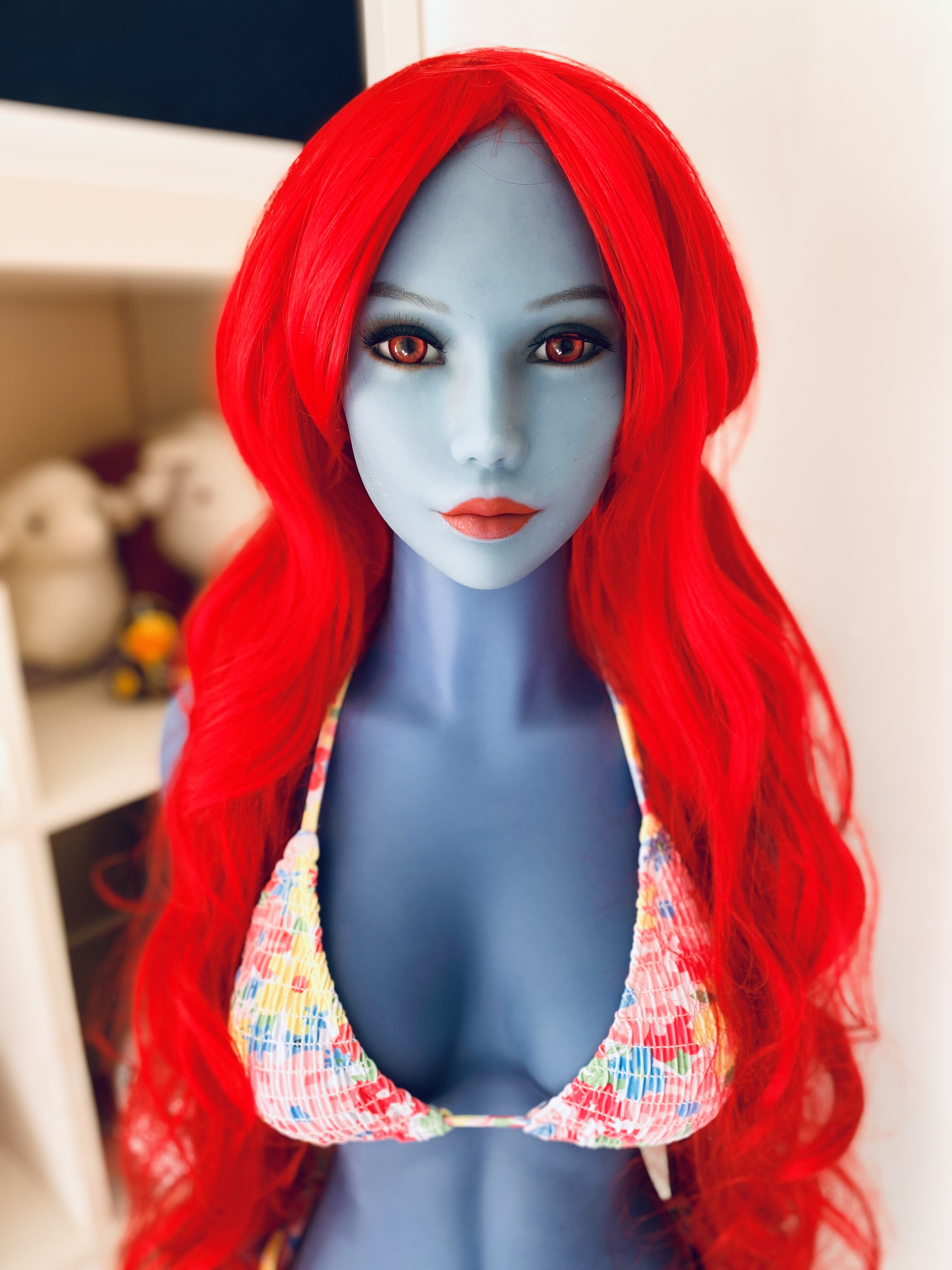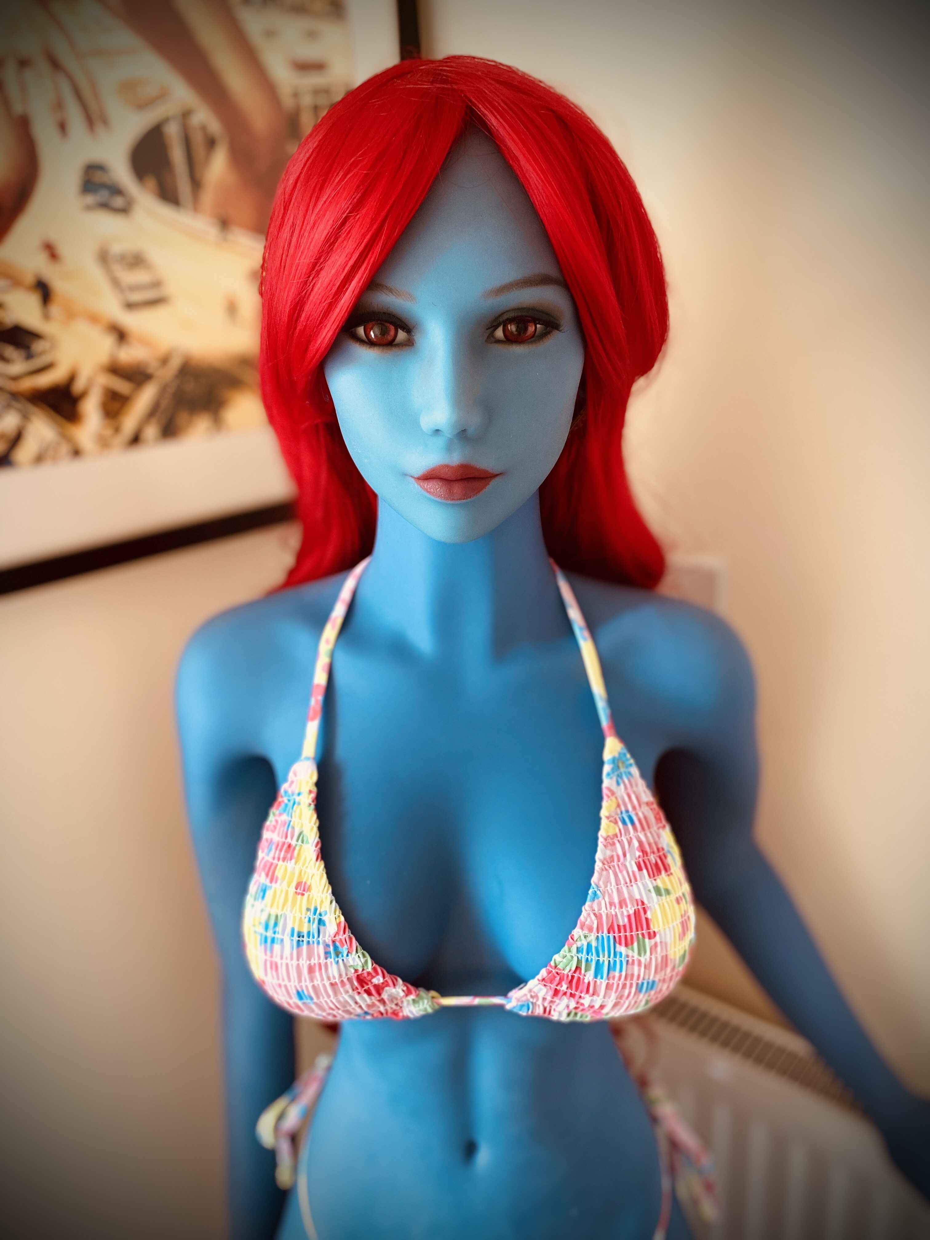 Blue, wonderful, Sexy. I love how she glows and the red hair is a great choice for her. Love that body