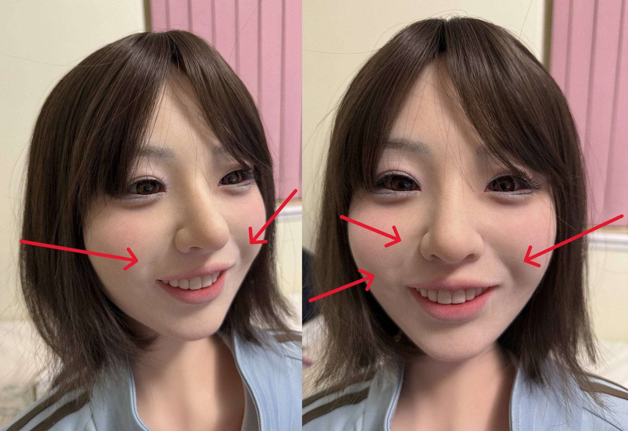 From the lifelike eyes that seem to hold a sparkle, to the perfectly sculpted lips, and the delicate definition of each tooth and gum. It’s a masterpiece of artistry. They brought my every request to life: the gentle wrinkle on her cheek, the specific eye shape, and that signature long lower eyelid with its perfect makeup stroke. The rosy blush on her cheeks completes the look, giving her a genuinely happy, glowing aura