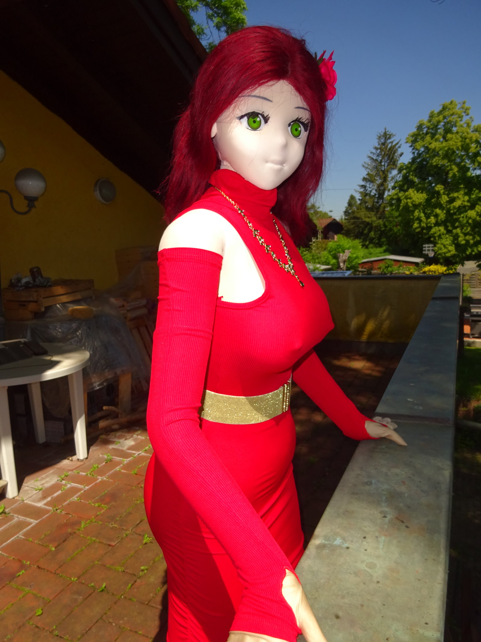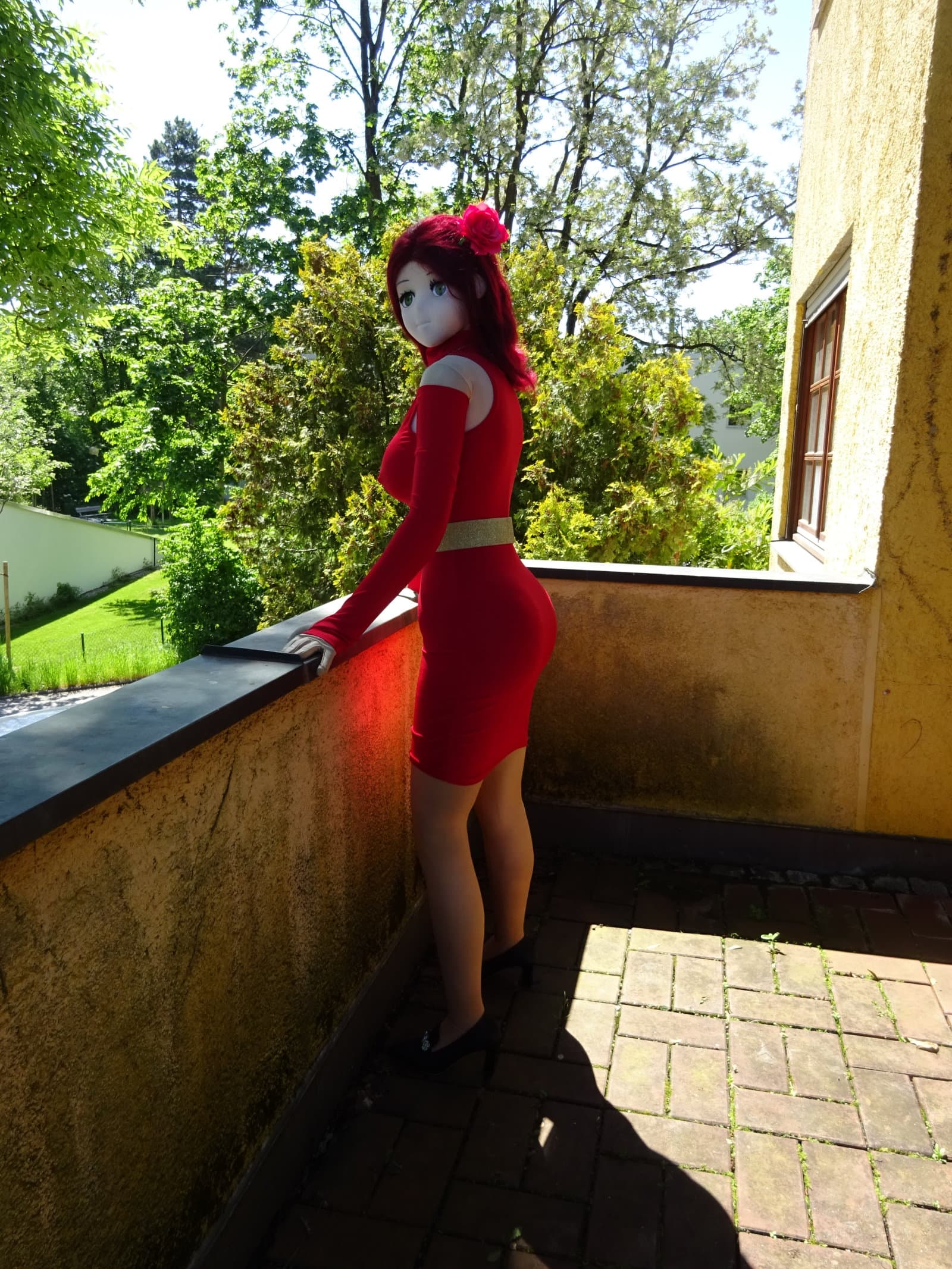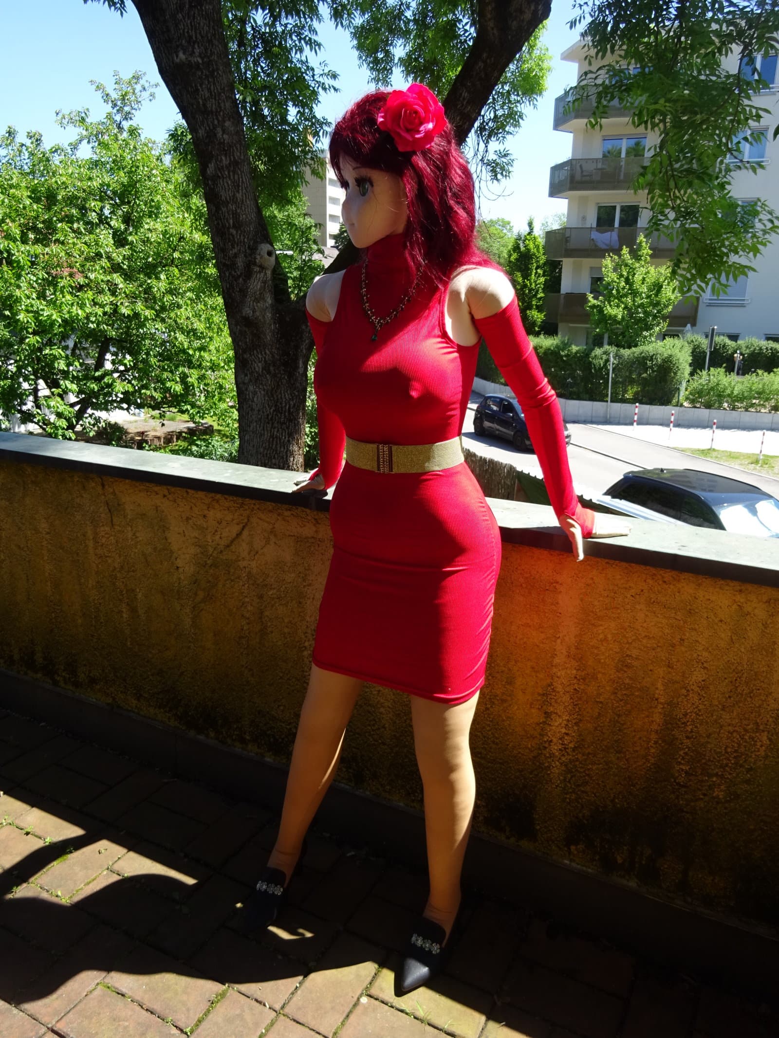 Actually I had already a shooting with Petra and Roxi yesterday but we decided to redo the shooting with Petra since I forgot some details for her outfit. She wears a new tight red dress which underlines her sexy appearance. So here goes …