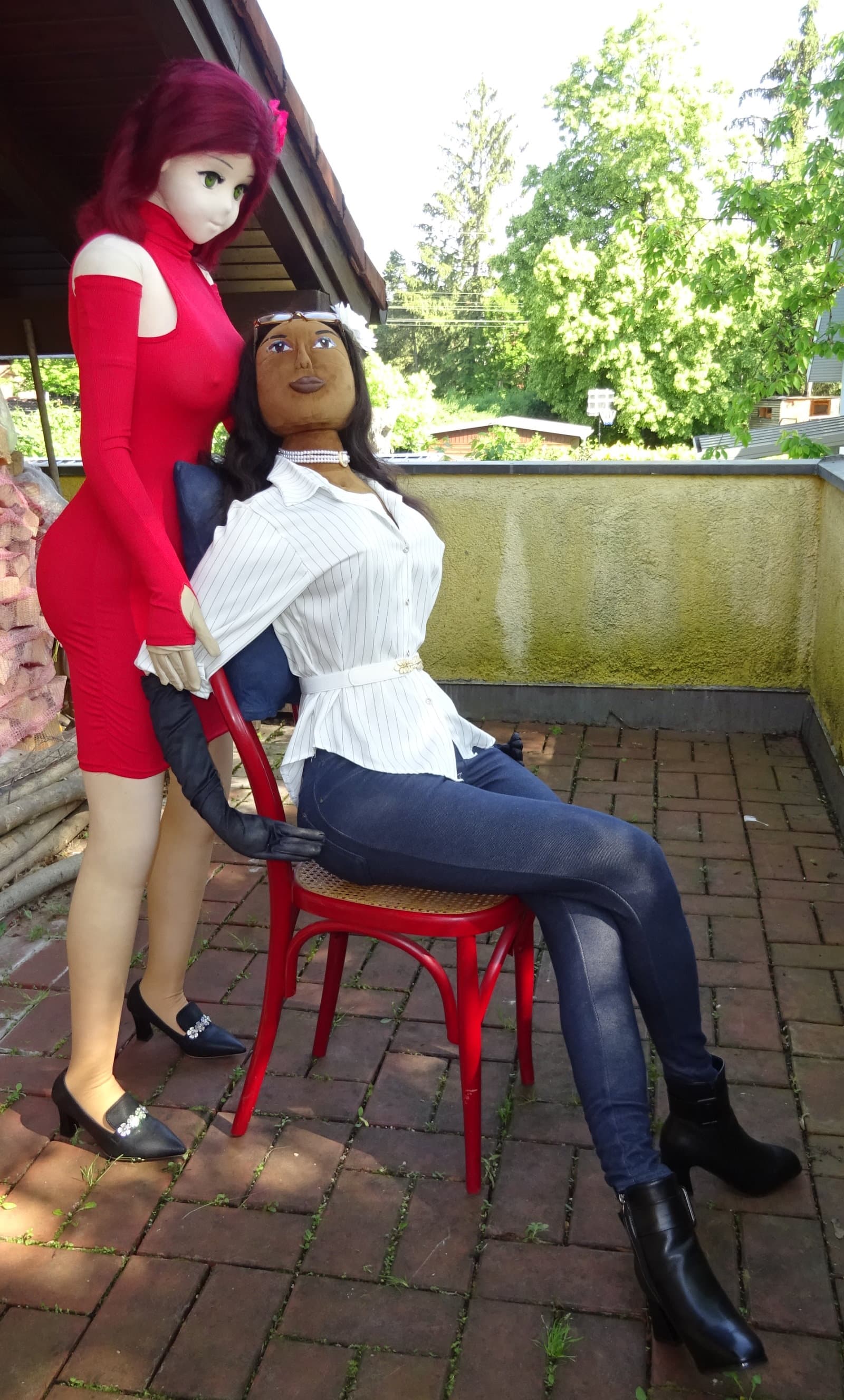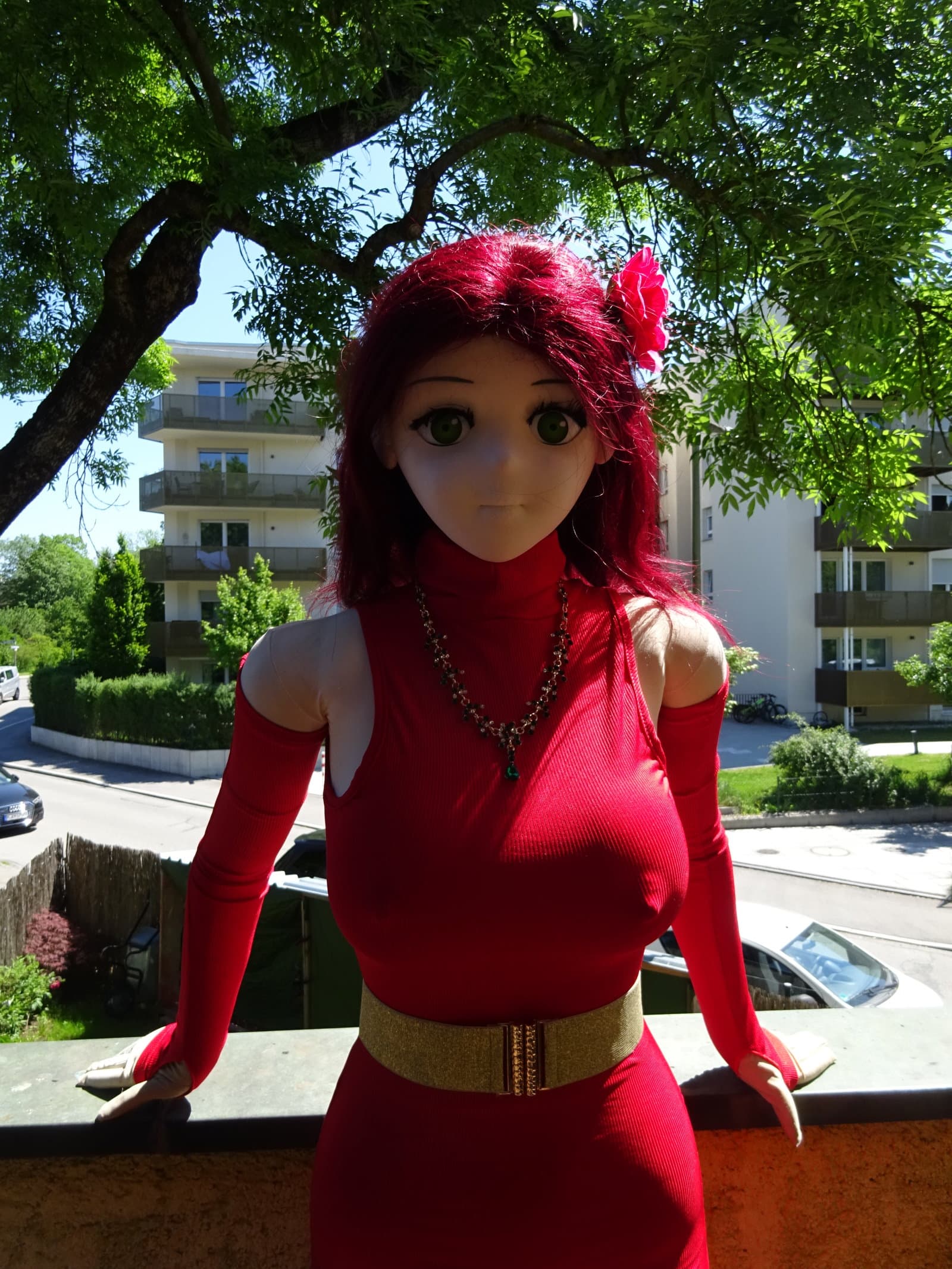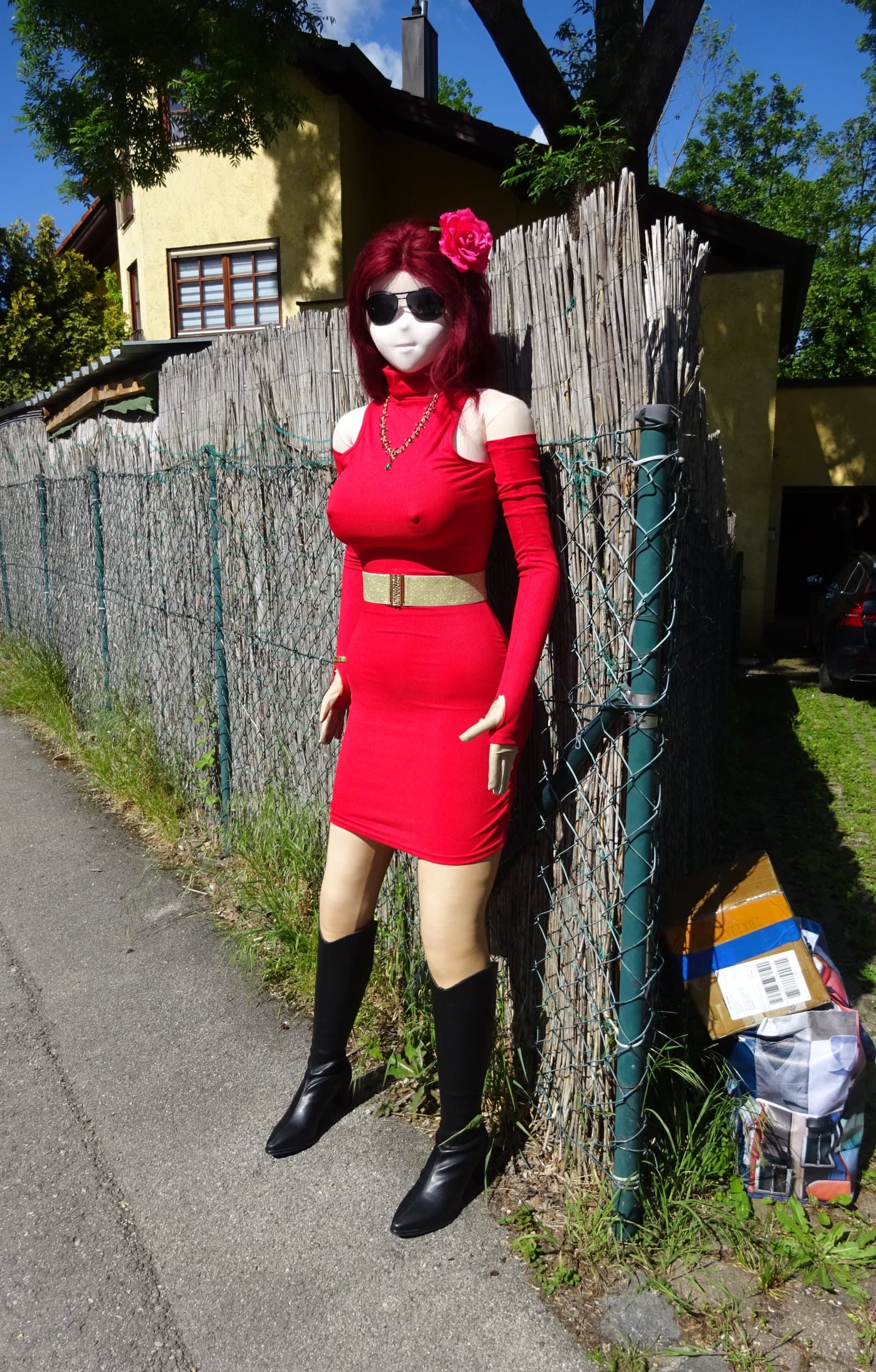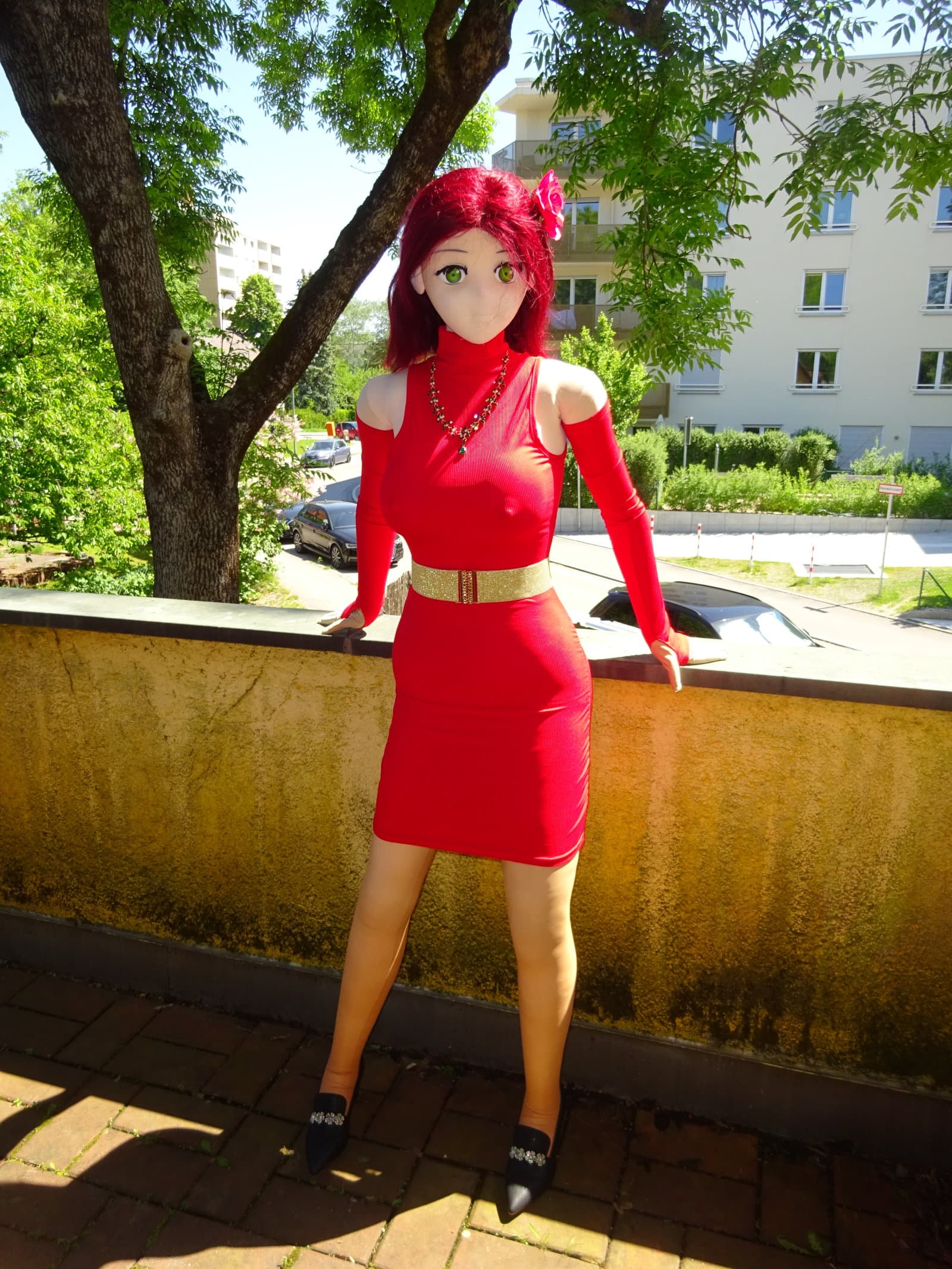 Actually I had already a shooting with Petra and Roxi yesterday but we decided to redo the shooting with Petra since I forgot some details for her outfit. She wears a new tight red dress which underlines her sexy appearance. So here goes …