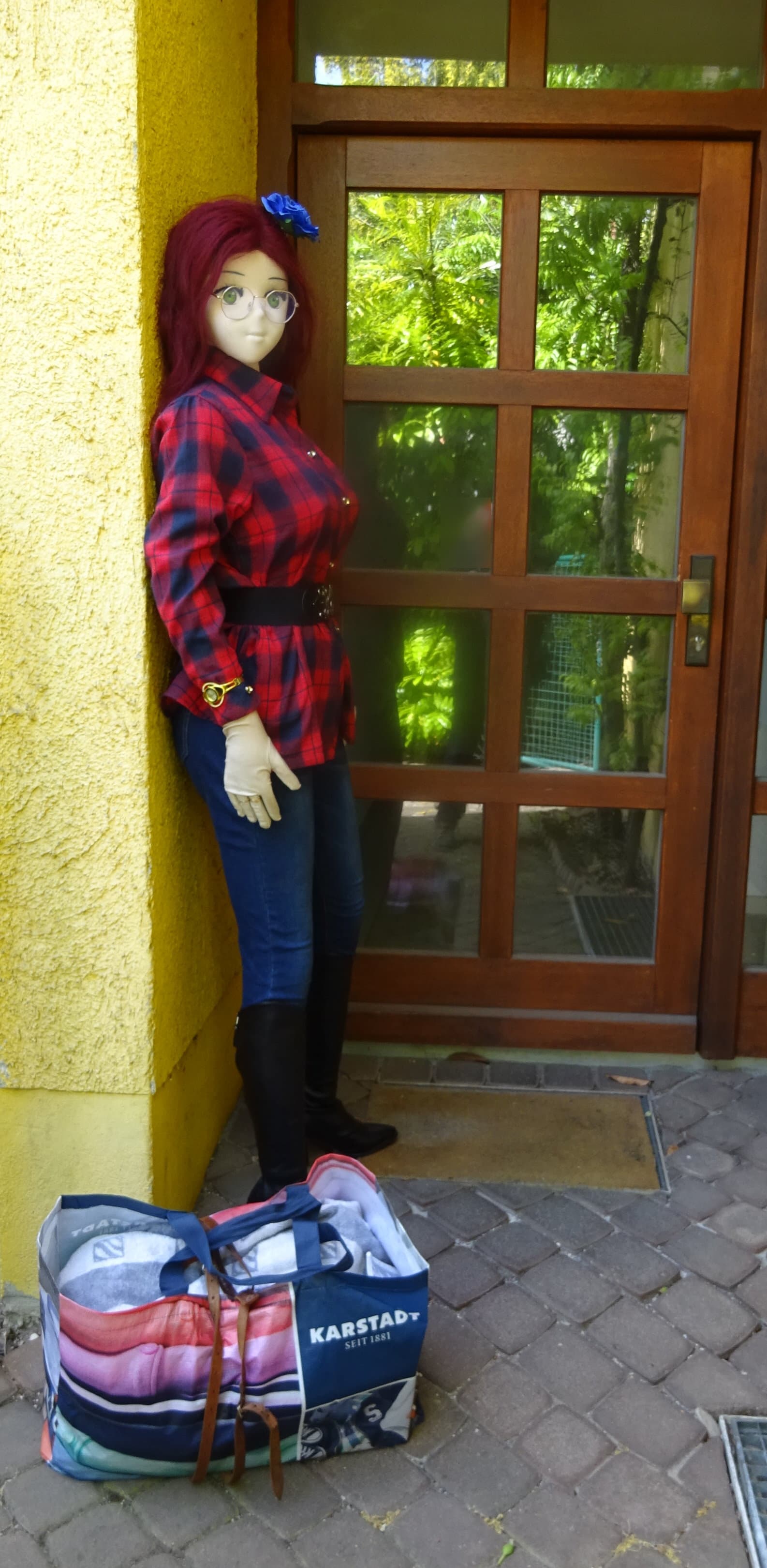 Today Petra travelled one more time to a Munich Doll Meet. Around 10 am we went down to wait for the taxi since I have no car. While waiting my neighbours returned home from their Saturday shopping and saw us standing there pretty much like last October. But this time they knew what we were about.