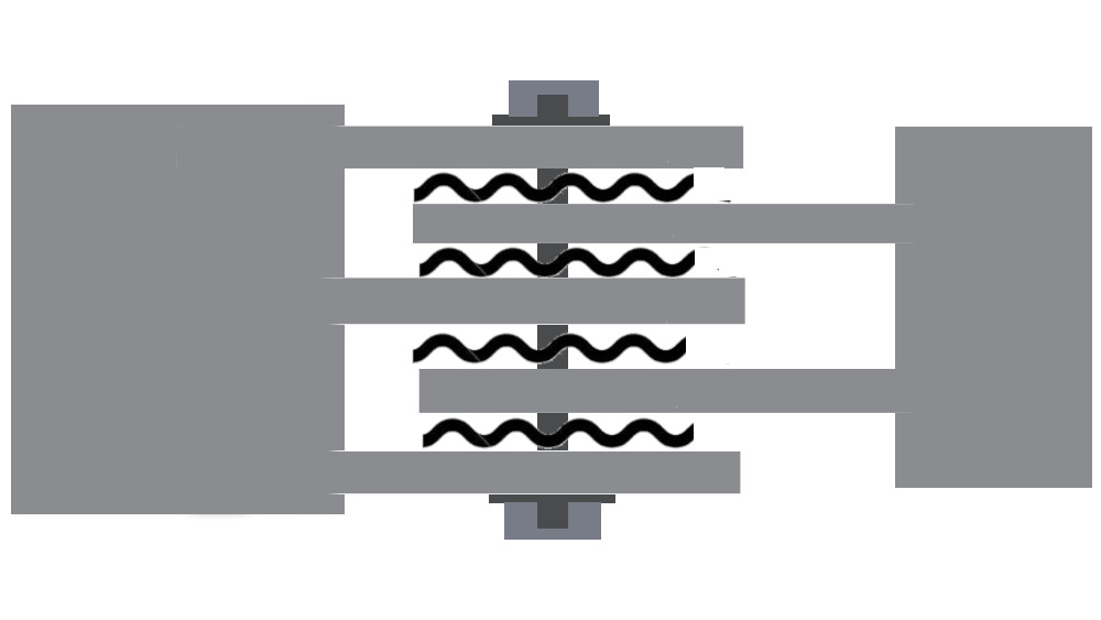 The drawing I made is a very simple one to show what it looks like, of course many changes can be made to this to counteract lateral forces by having sturdy bushes in the center of the wave springs.