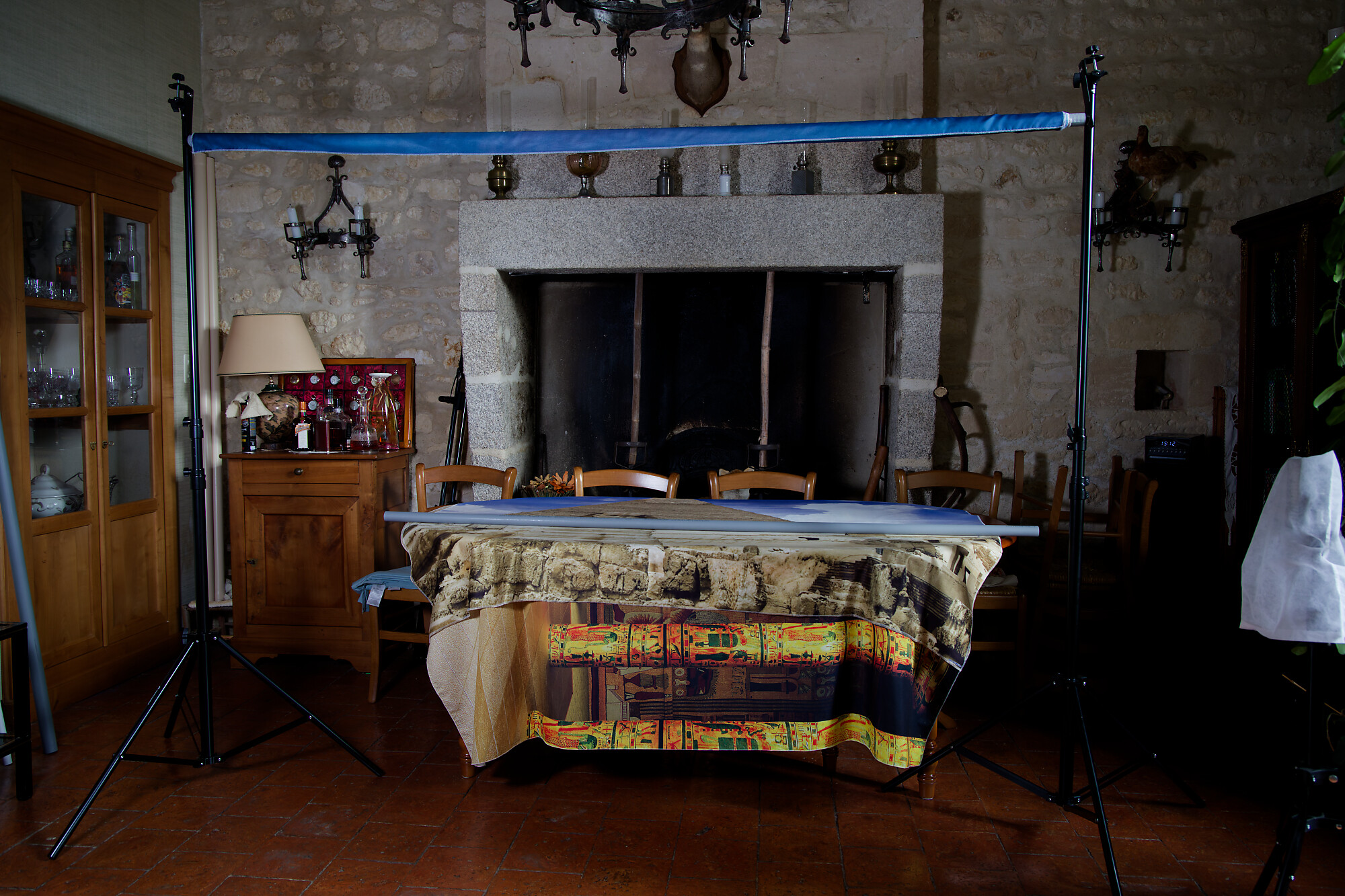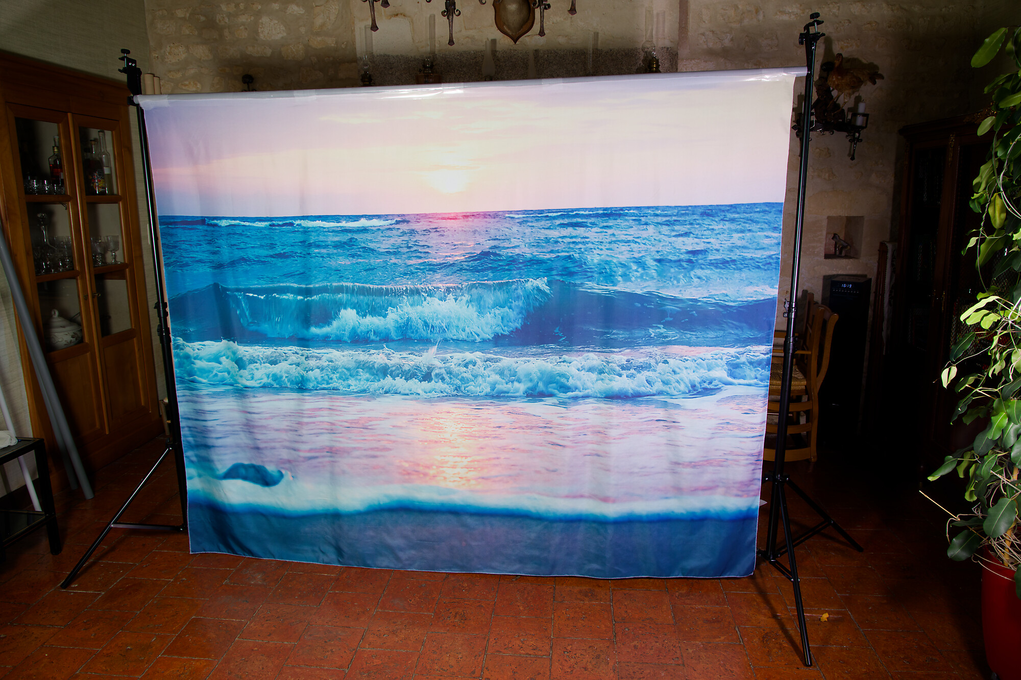 For my photo backdrops, I’ve been using a Bresser system for the past few months: two independent support stands onto which you hang the backdrop, which has been rolled up onto a PVC tube beforehand. For backdrops up to 2 meters wide, storing them vertically is easy. For 3-meter backdrops, you need to have a ceiling high enough in your home.