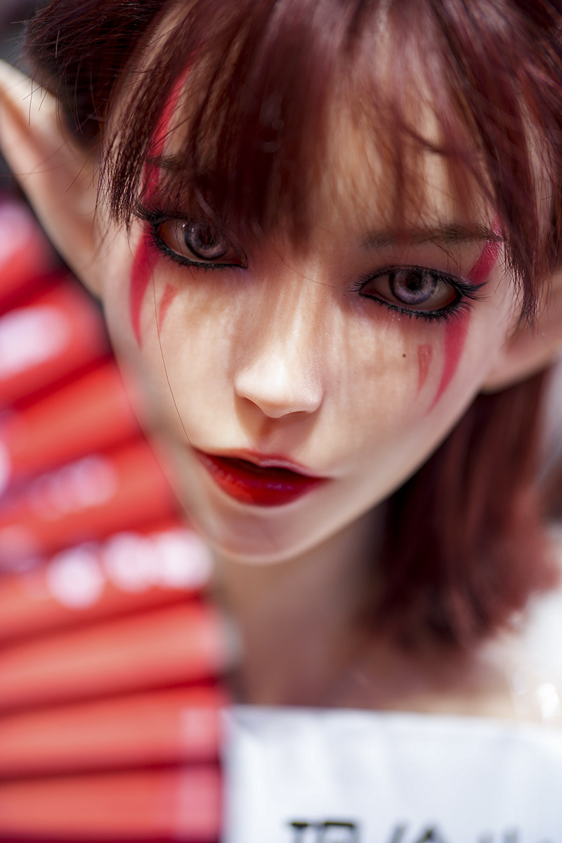 Red fantasy facial markings