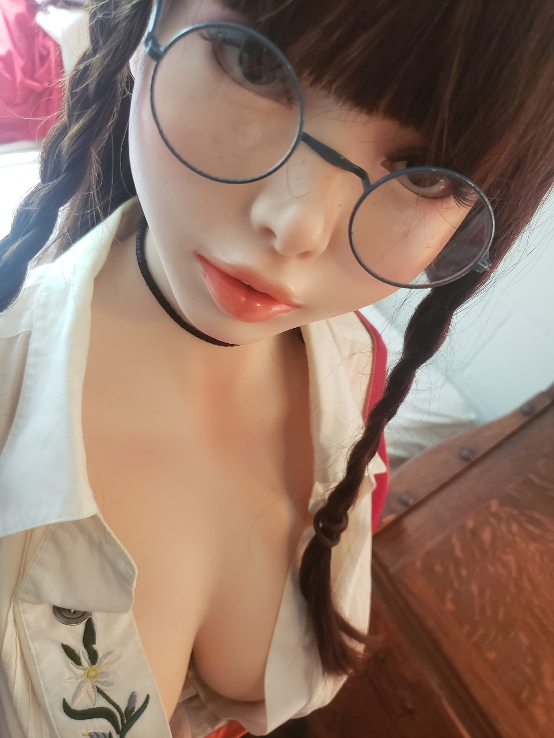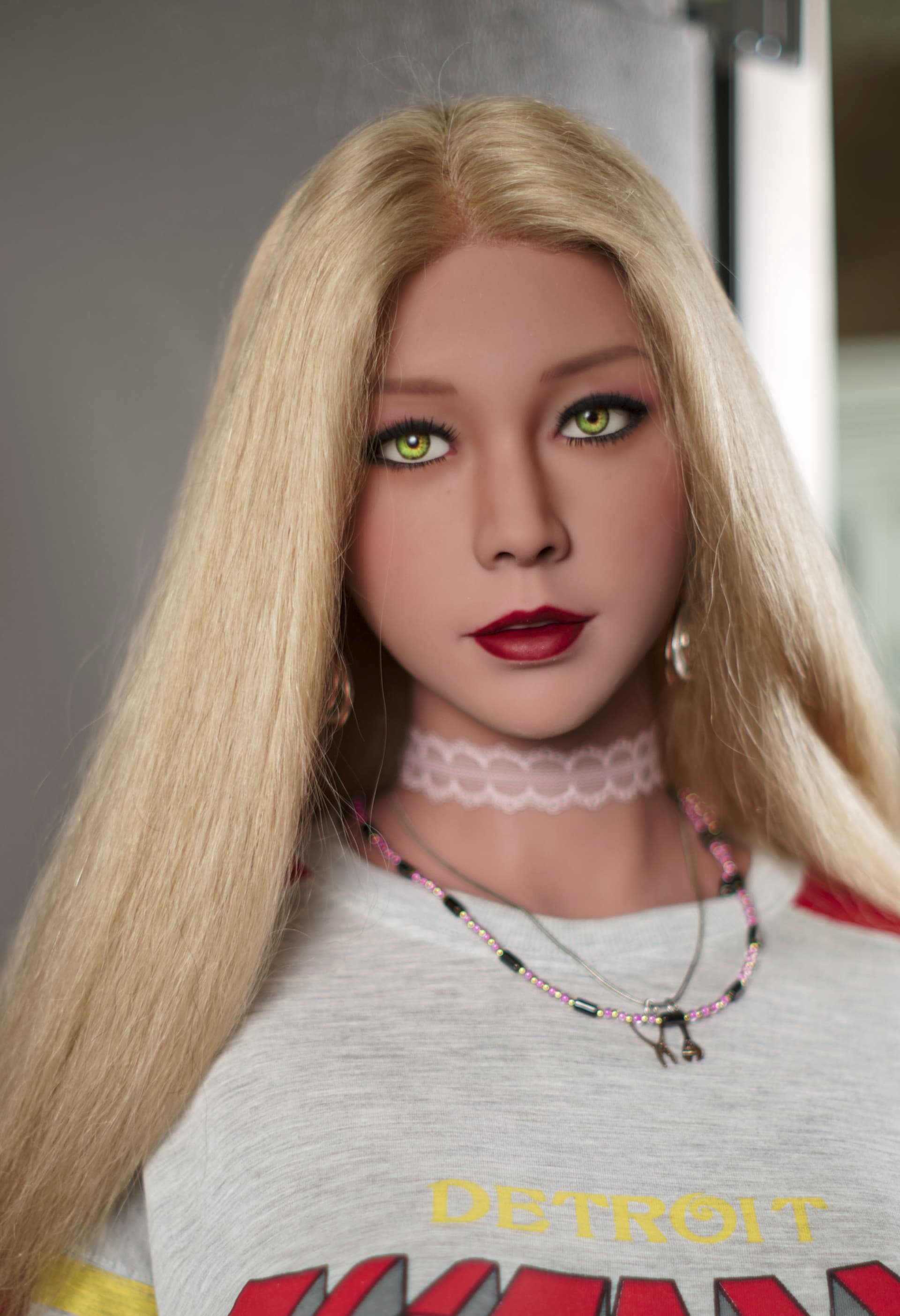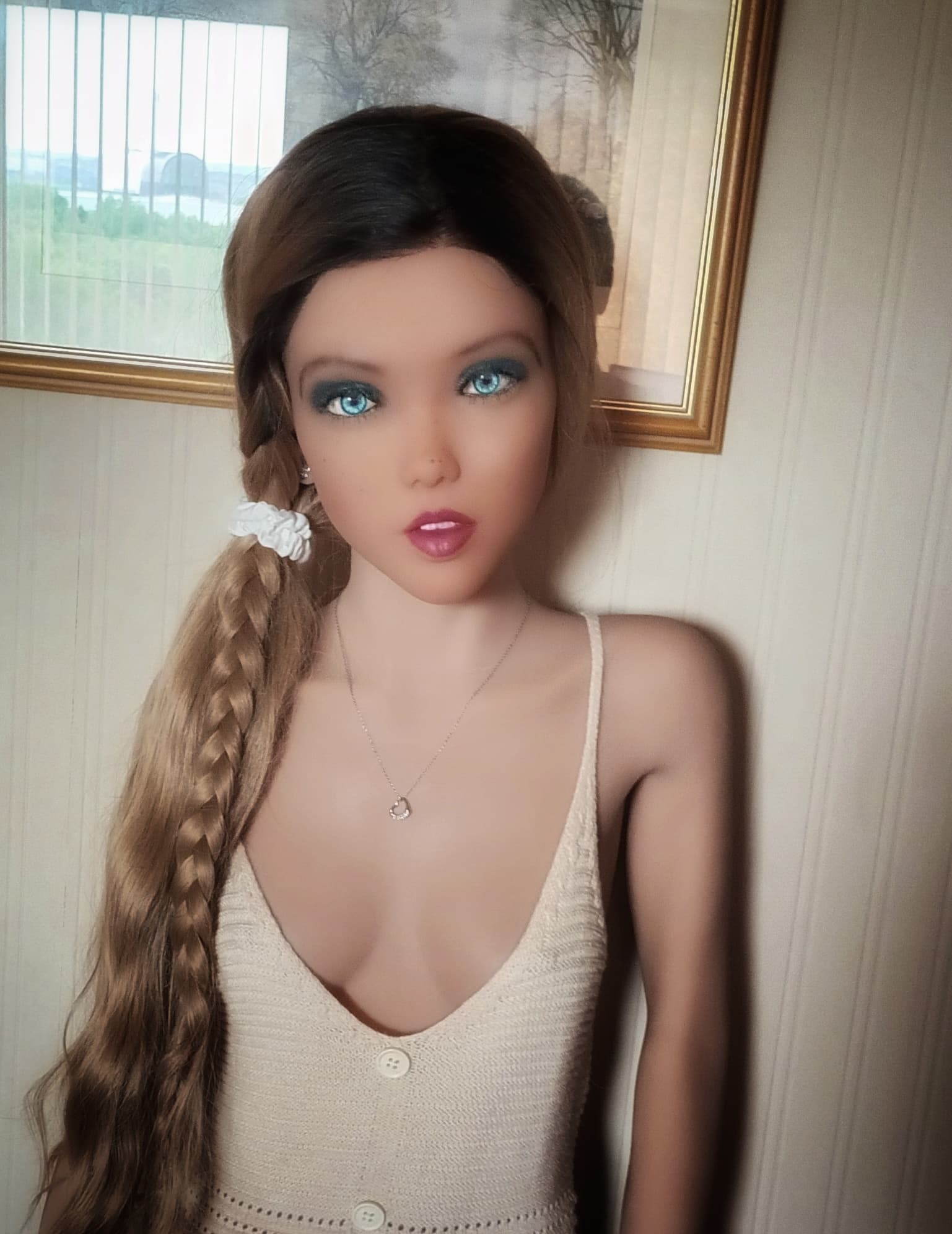 I actually had to replace the wig with an identical one as it was a very poorly made. You can proably see on the pics where she had just arrived before she had freckles the edge of the wig cap.