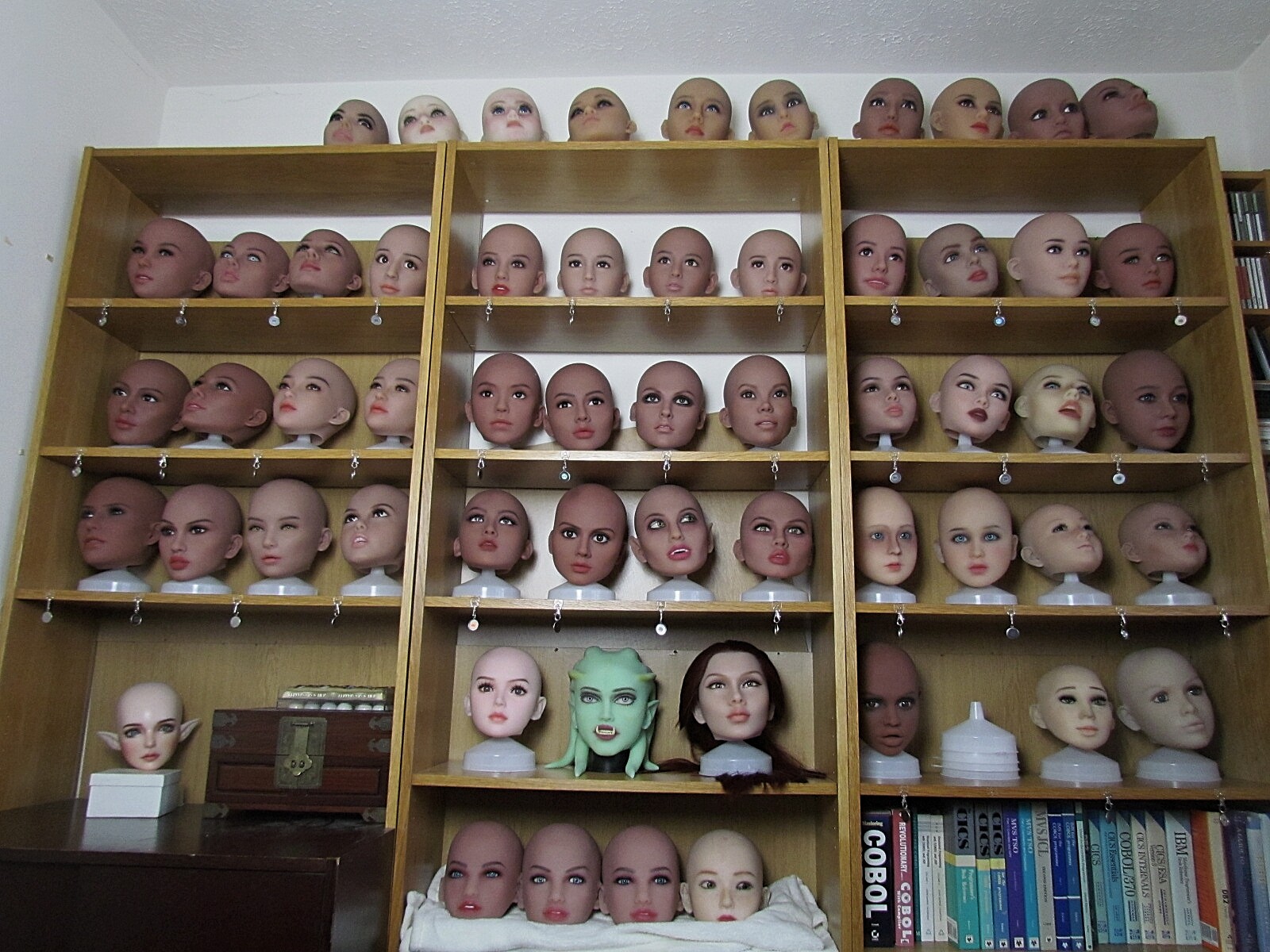 My first practicing was on the base of a neck, then on a spare non Jinsan head but have to say this is scary stuff as I use berol notewriters dried out to the right levels so you are applying ink onto TPE and it would be very, very easy to ruin a head so this isn’t something that I would advise others to try to do it my way. My method works for me but then I apply their makeup with artists brushes and basically paint their faces with makeup so its what works for you. DF’s use of brown eye liner is a much safer option than the inks that I use.