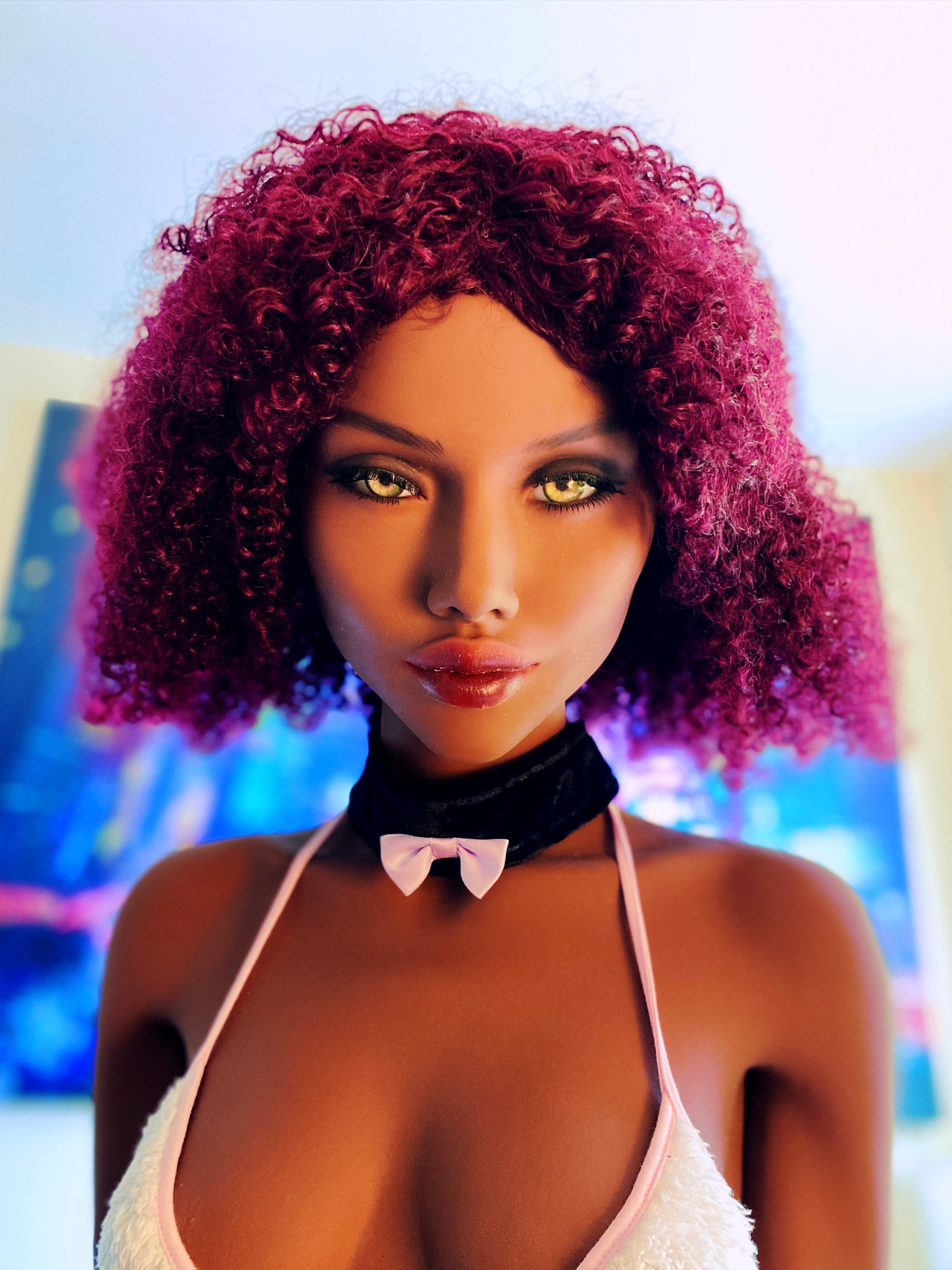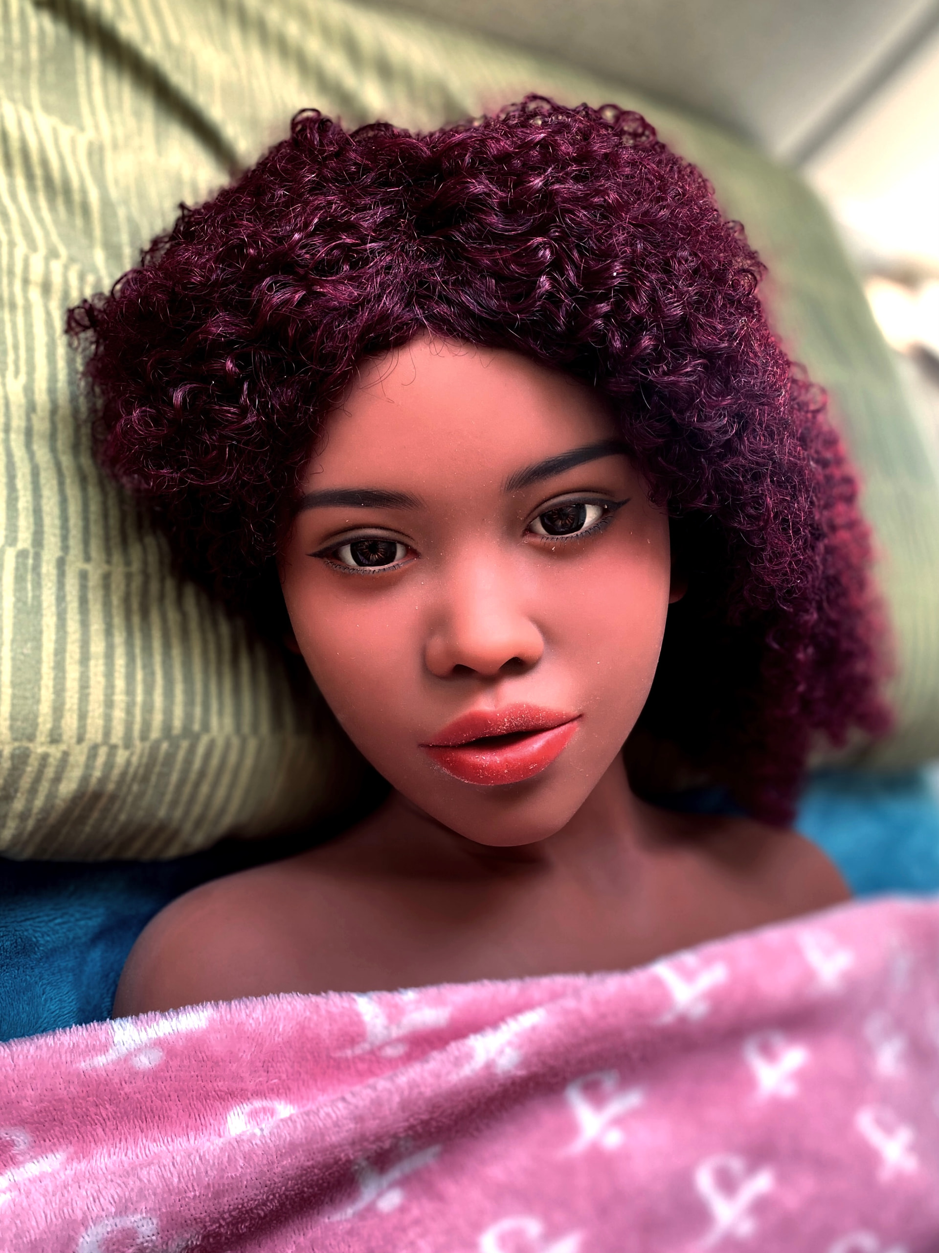 BTW She has no upper eyelashes. What do you think? One was coming lose, which was bugging me, so I removed it, then had a go trying to re-stick it to her face but it was such a faff, so I decided to leave her eyelashless off. I might restore them in the future with a self-adhesive eyelash kit.