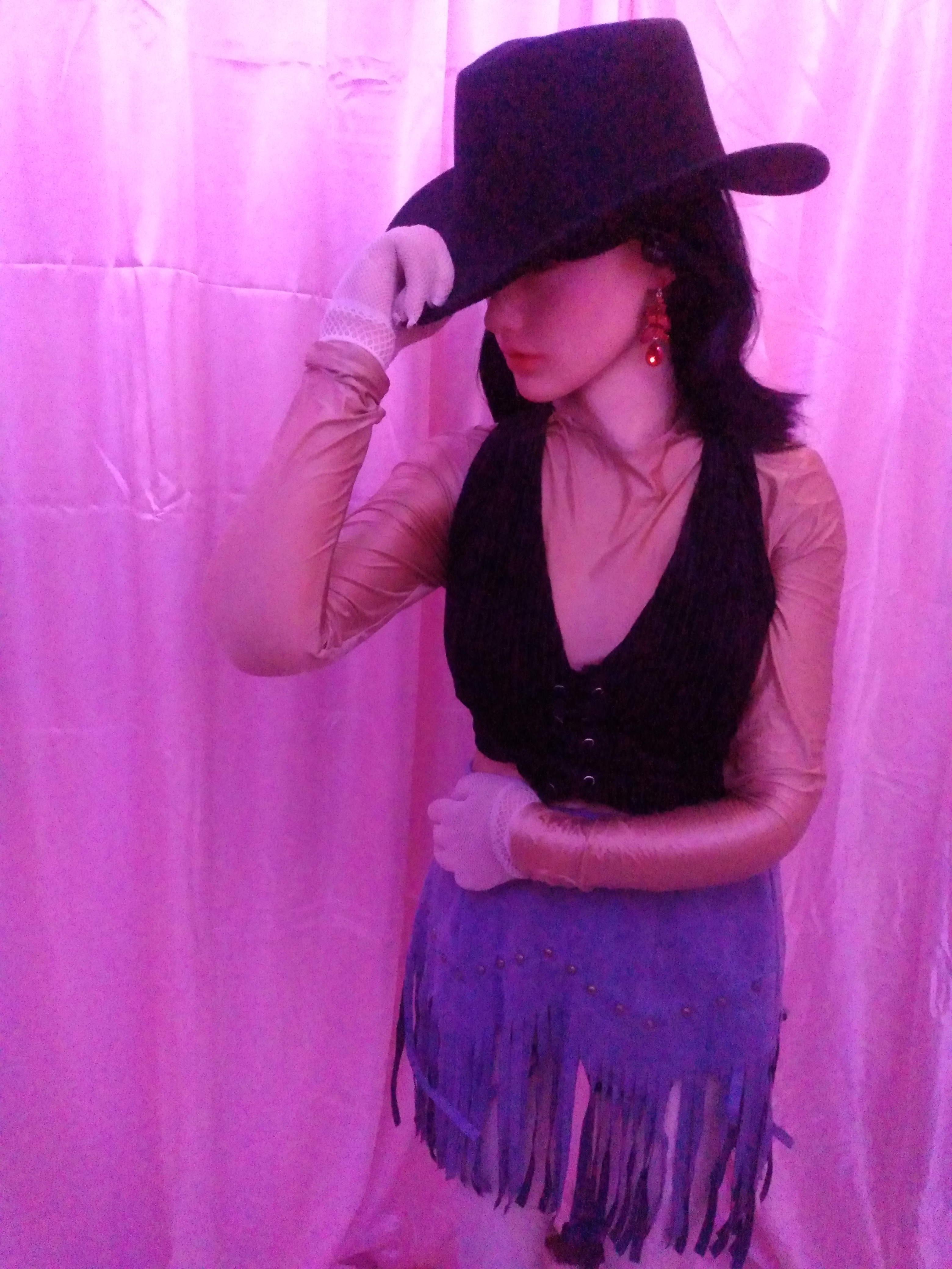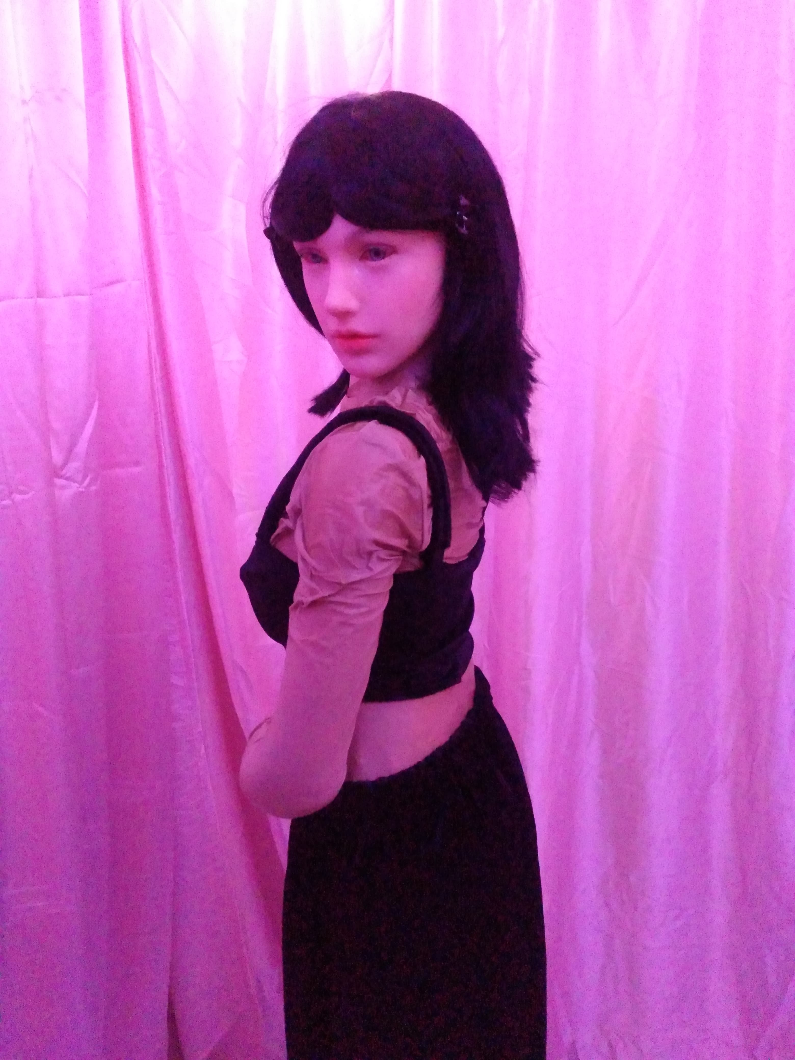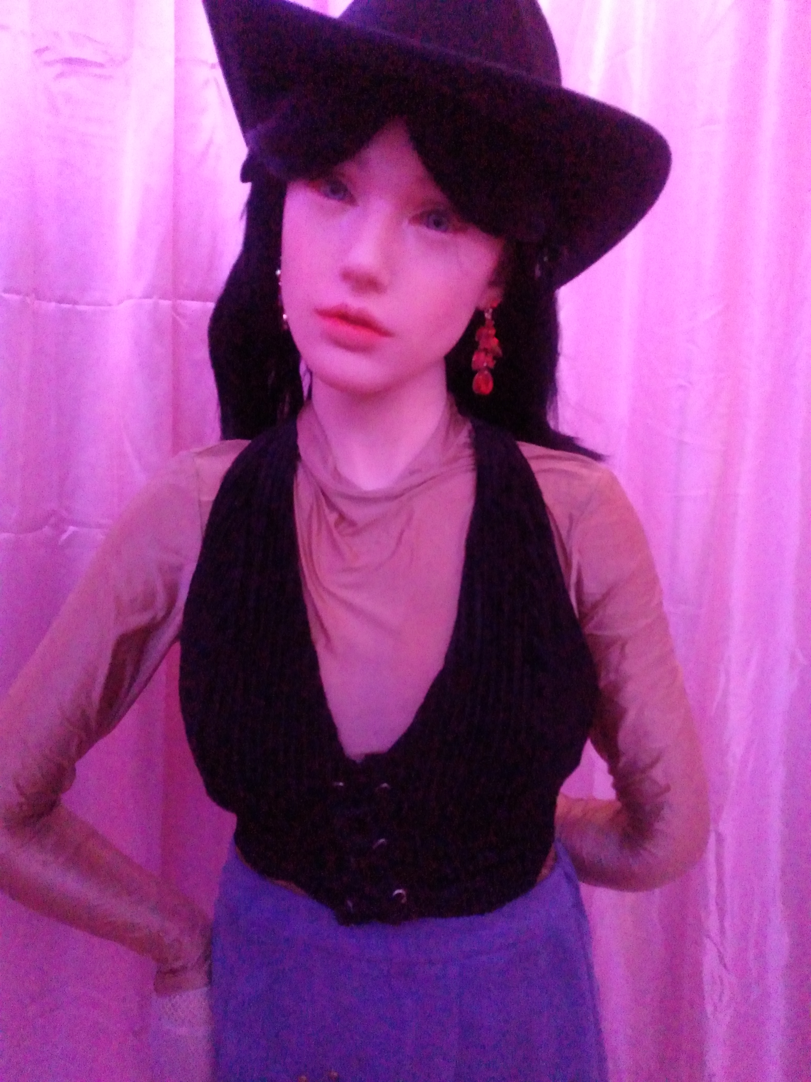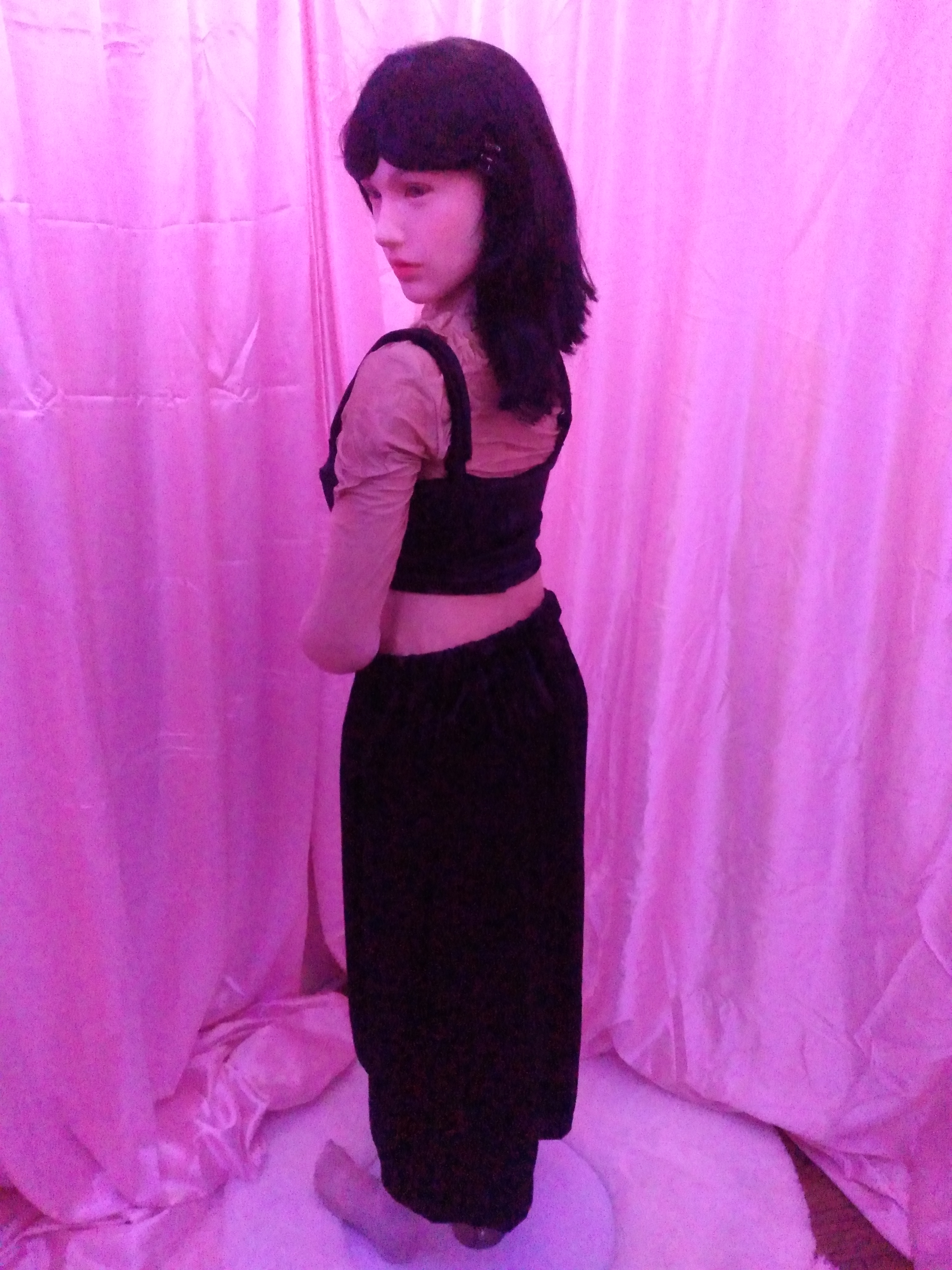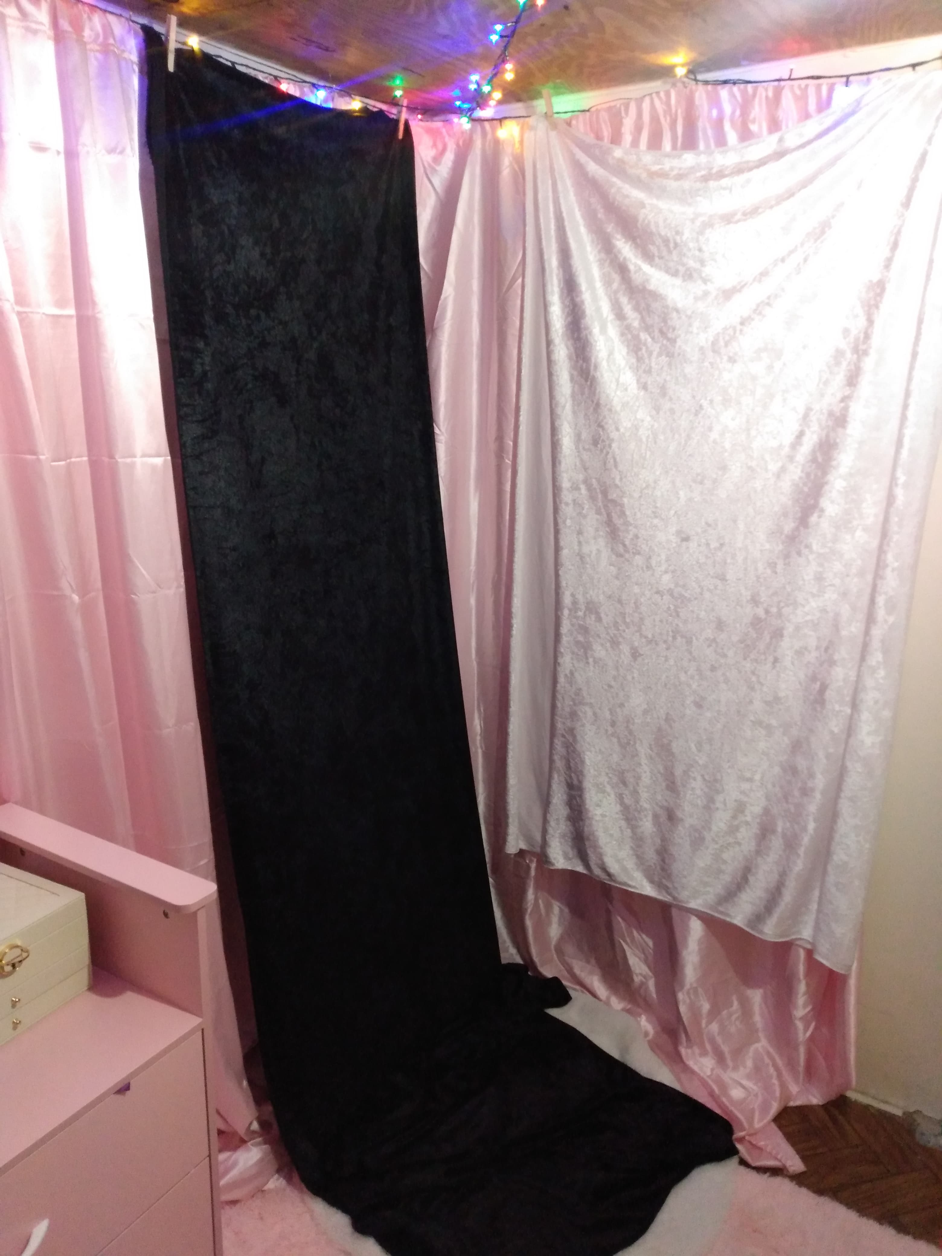 Hey guys, Abby is entering a goth girl phase. I bought 4 yards of black polyester velvet and 2 yards of white polyester velvet. What do you think I should make?