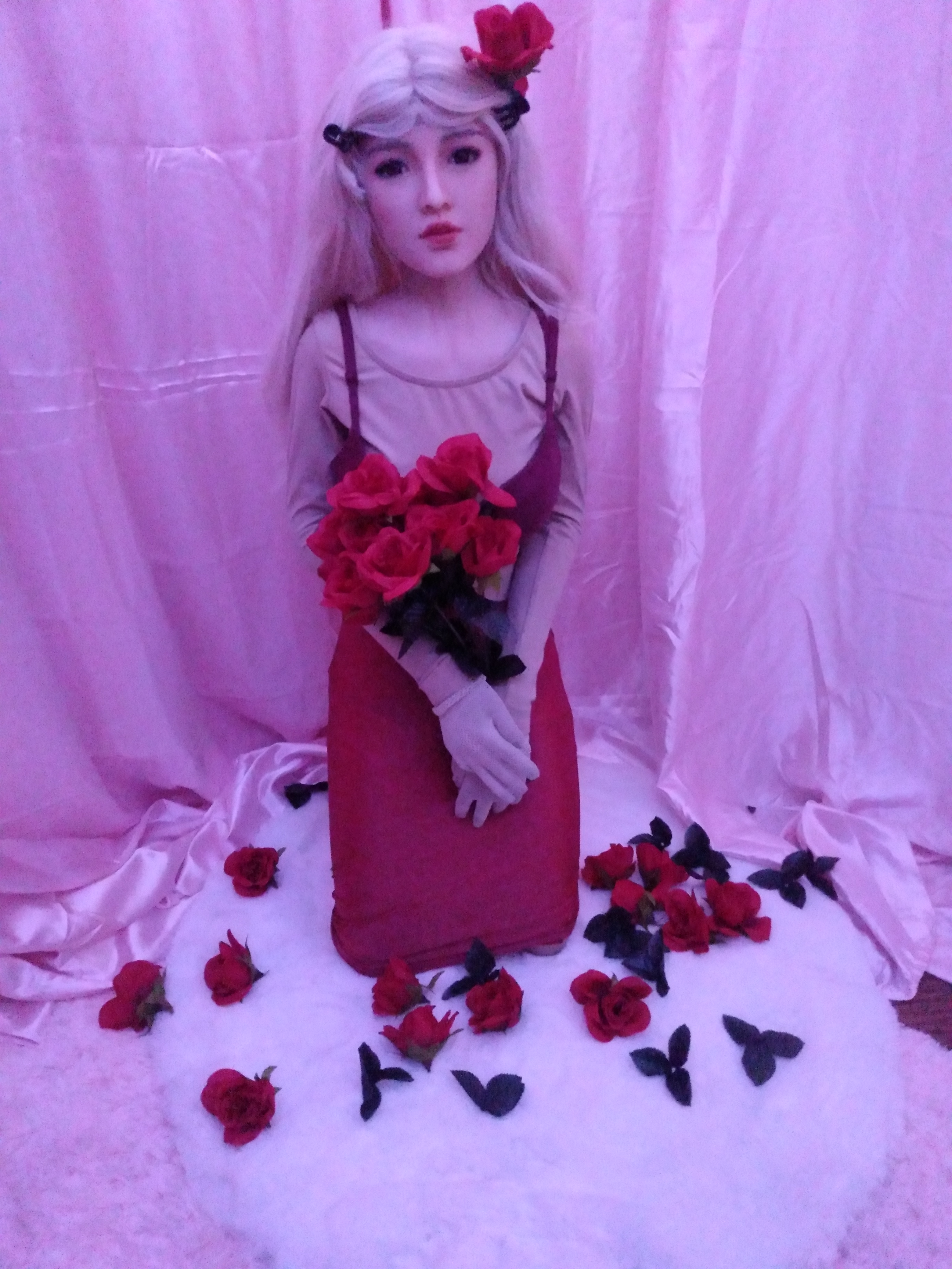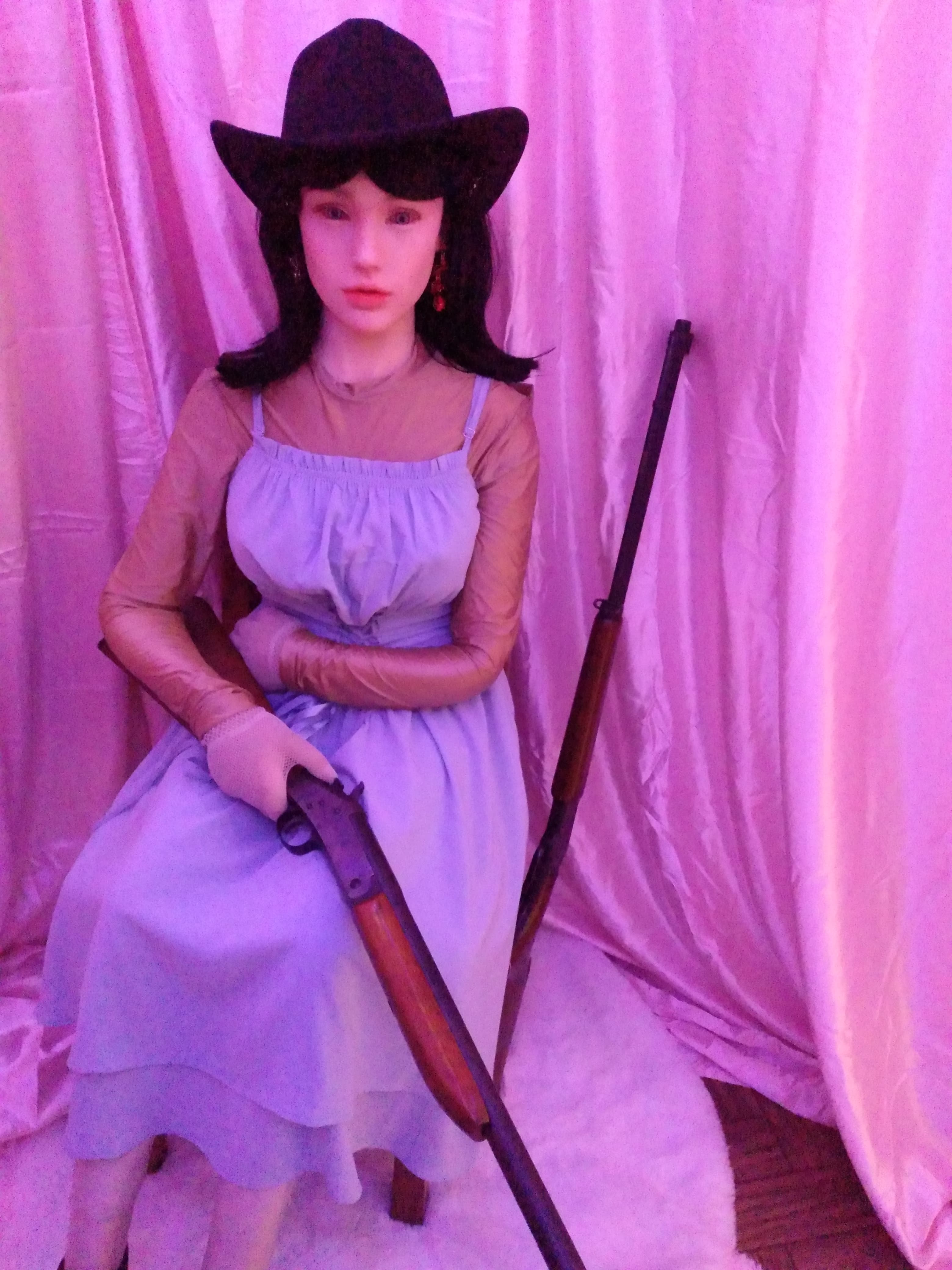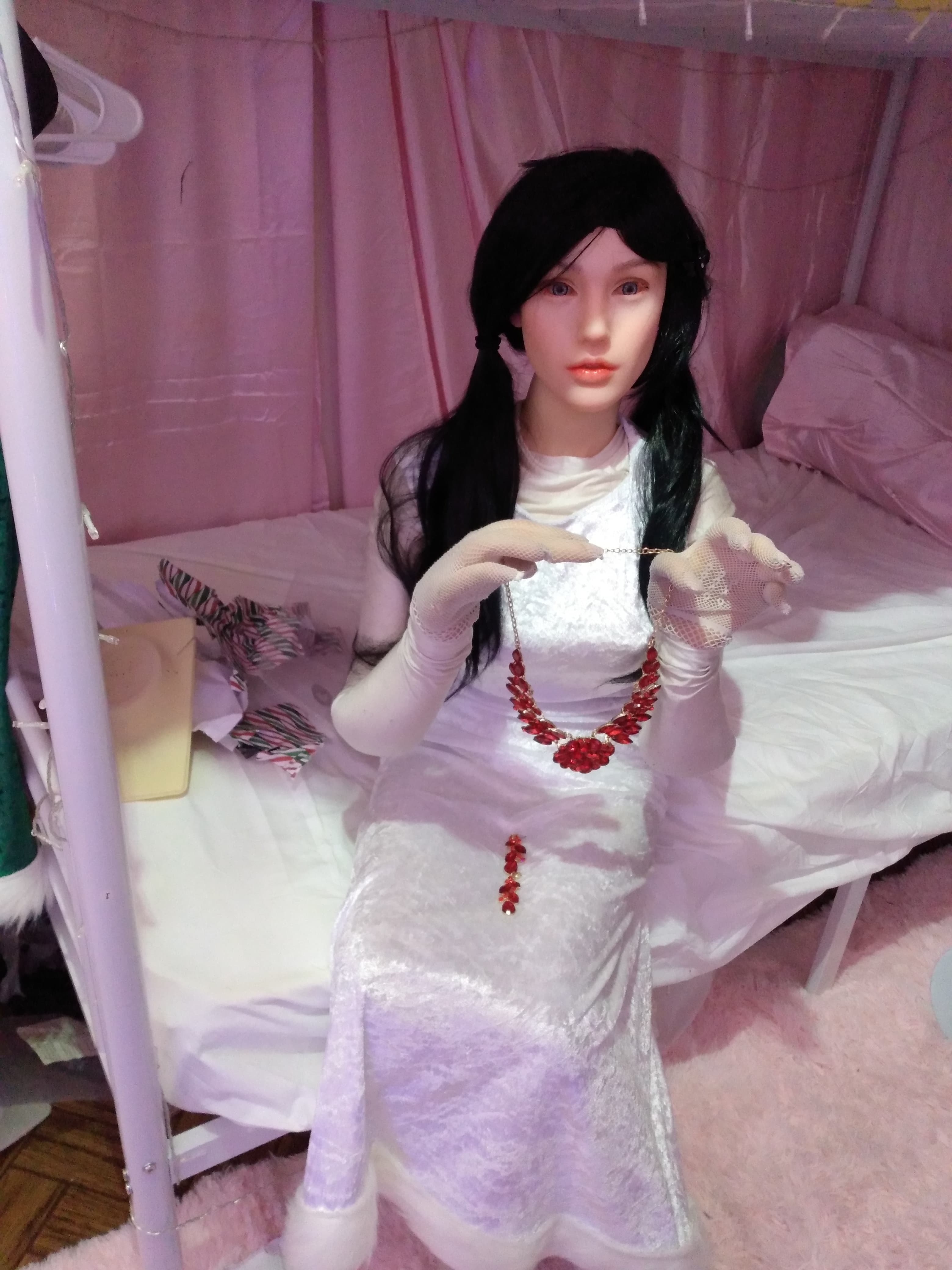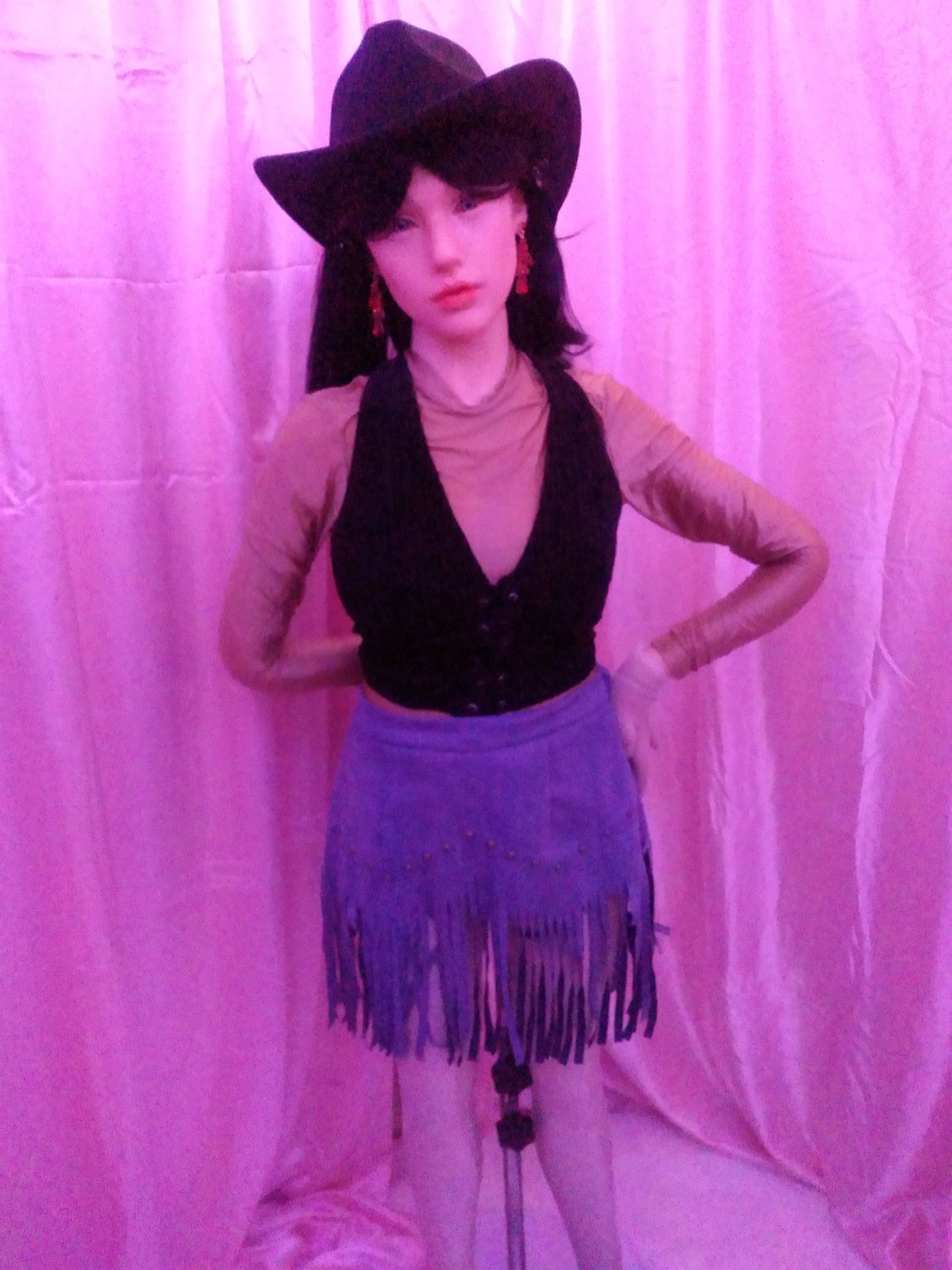 Hey guys, Abby is entering a goth girl phase. I bought 4 yards of black polyester velvet and 2 yards of white polyester velvet. What do you think I should make?