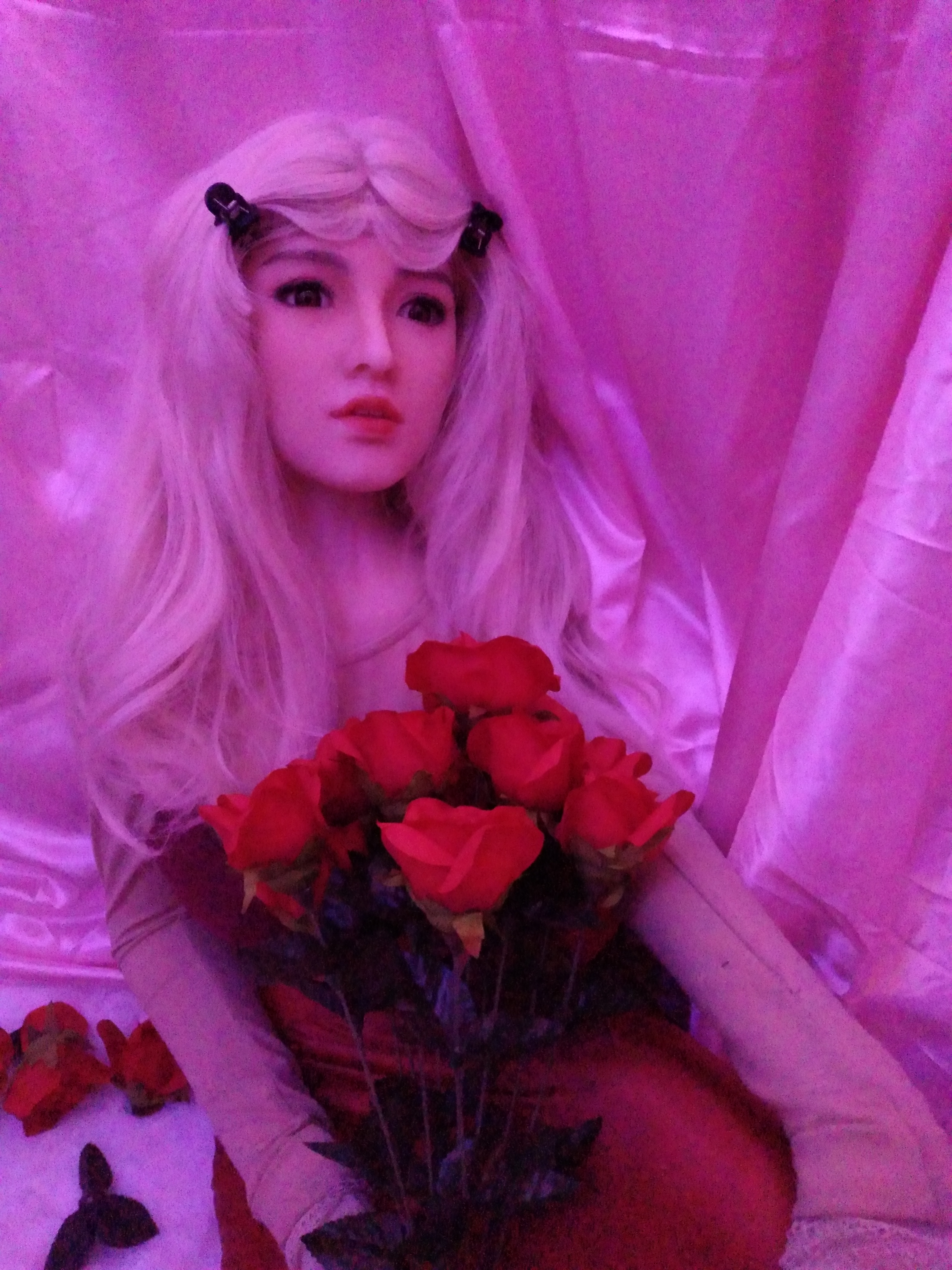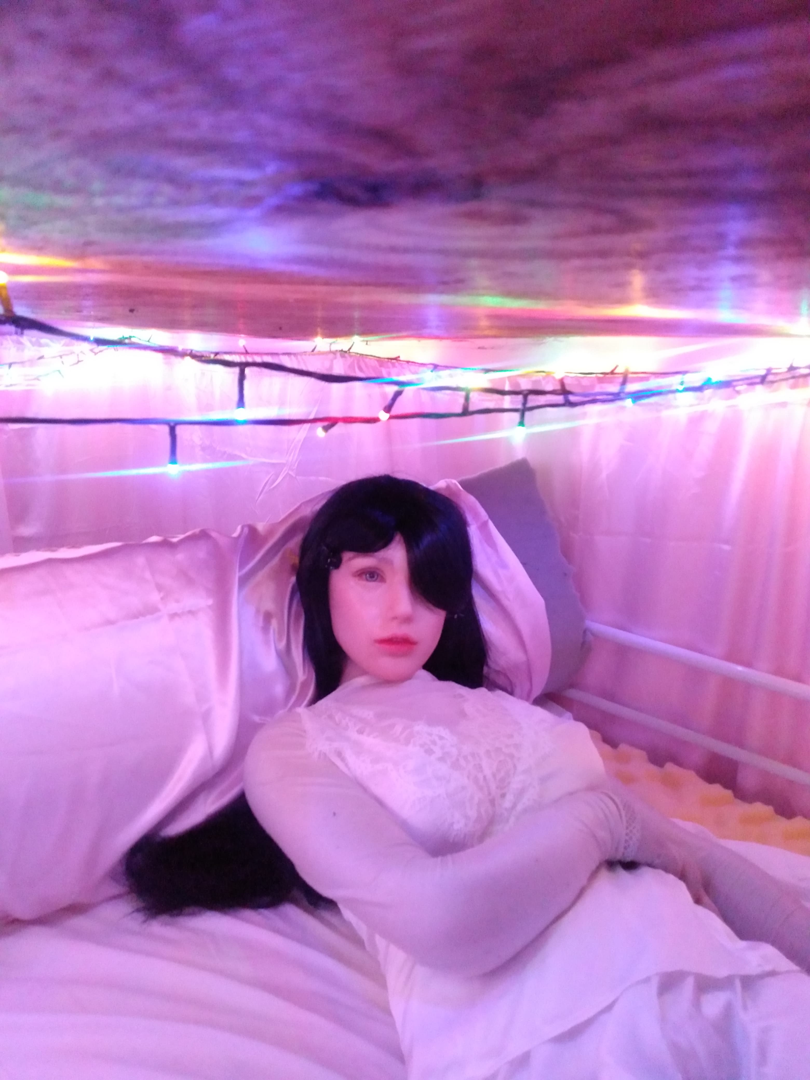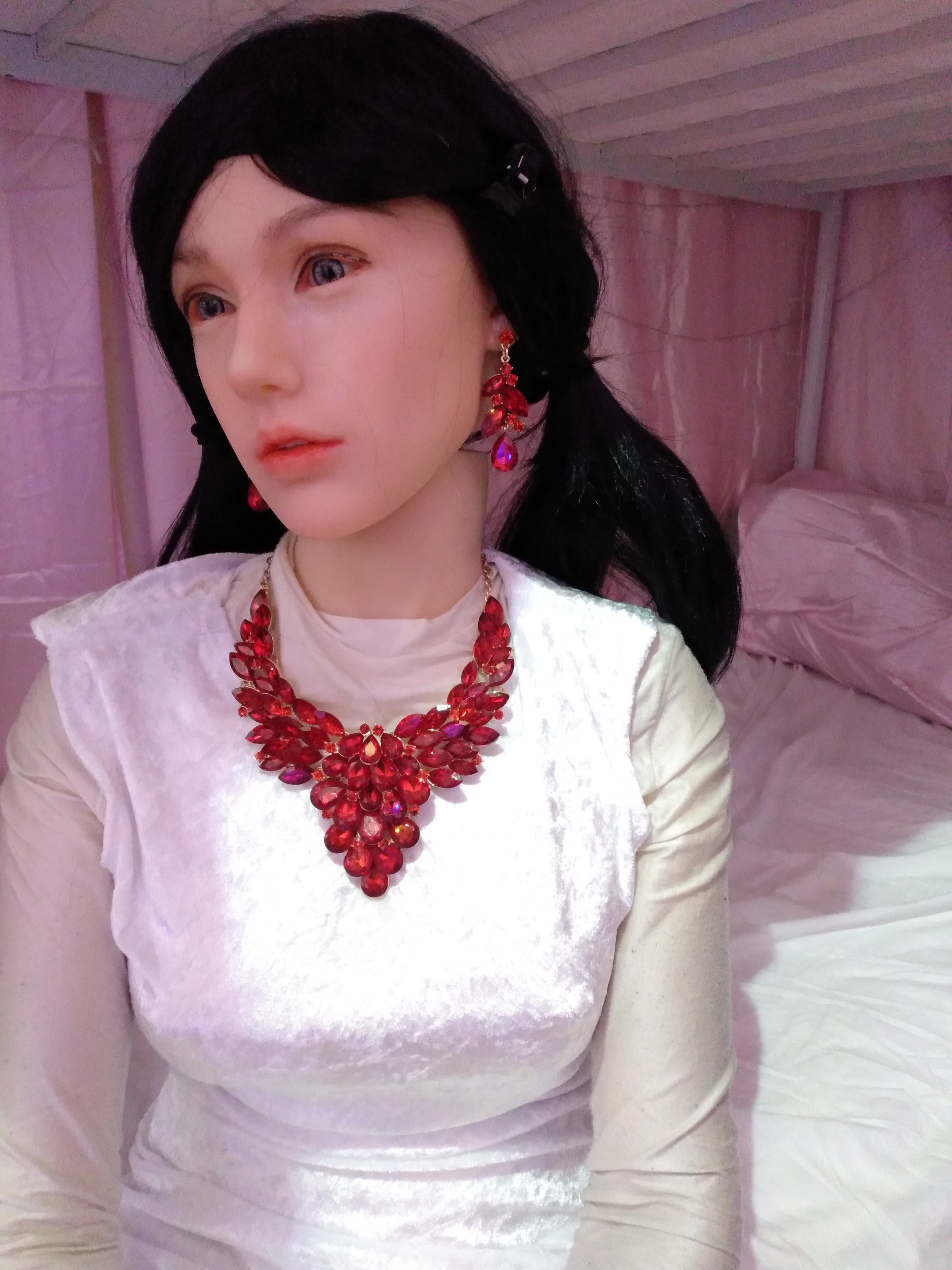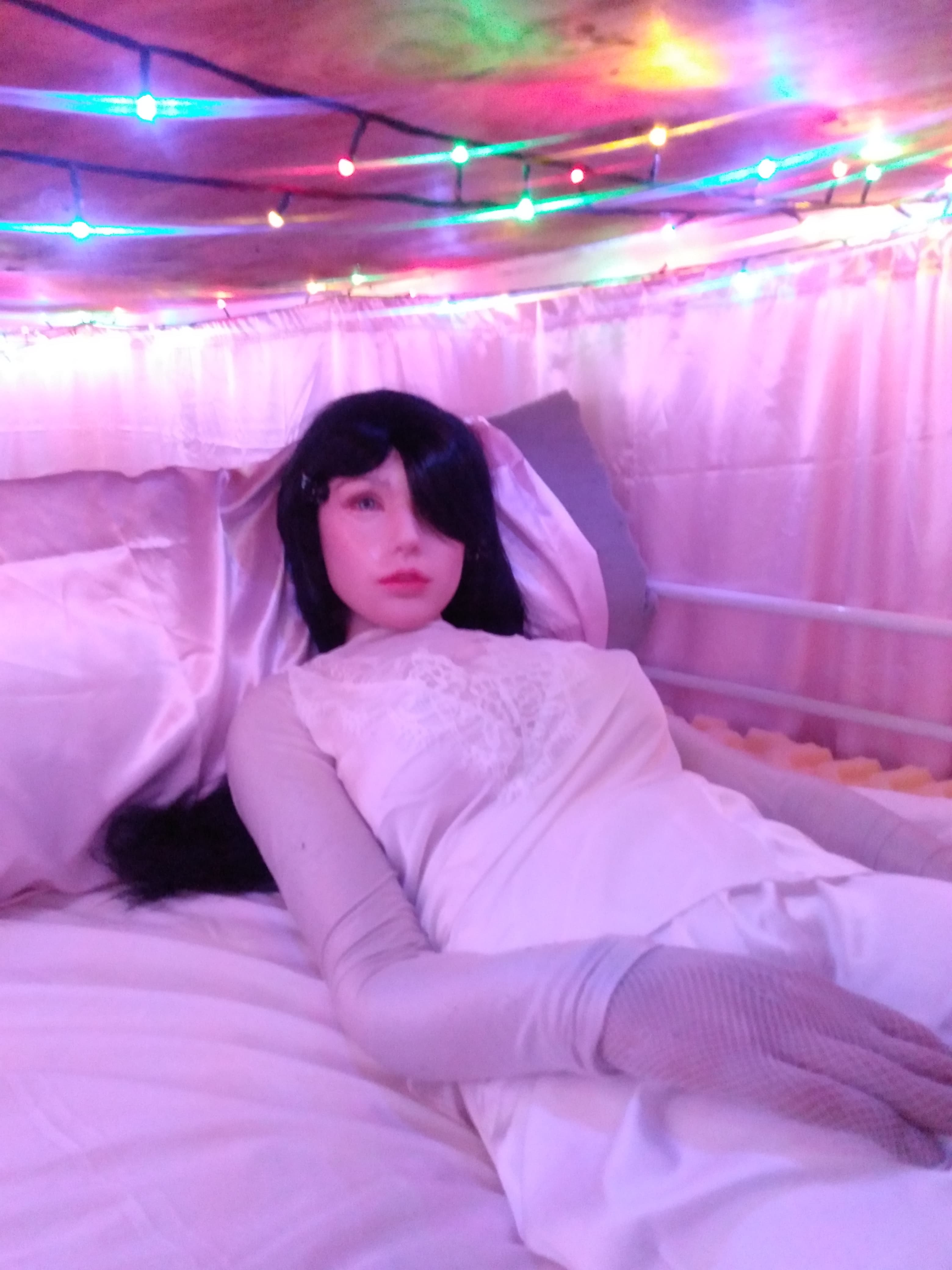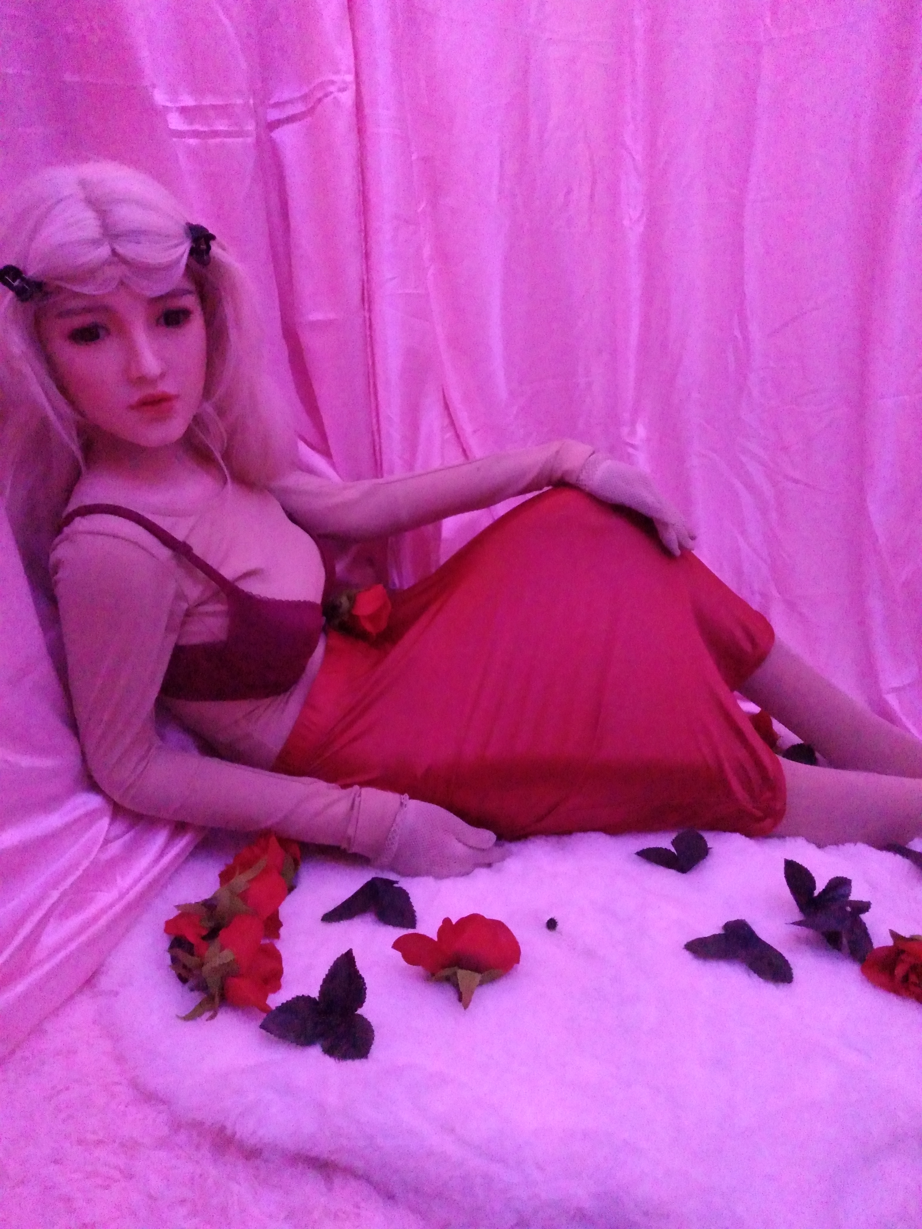 Hey guys, Abby is entering a goth girl phase. I bought 4 yards of black polyester velvet and 2 yards of white polyester velvet. What do you think I should make?