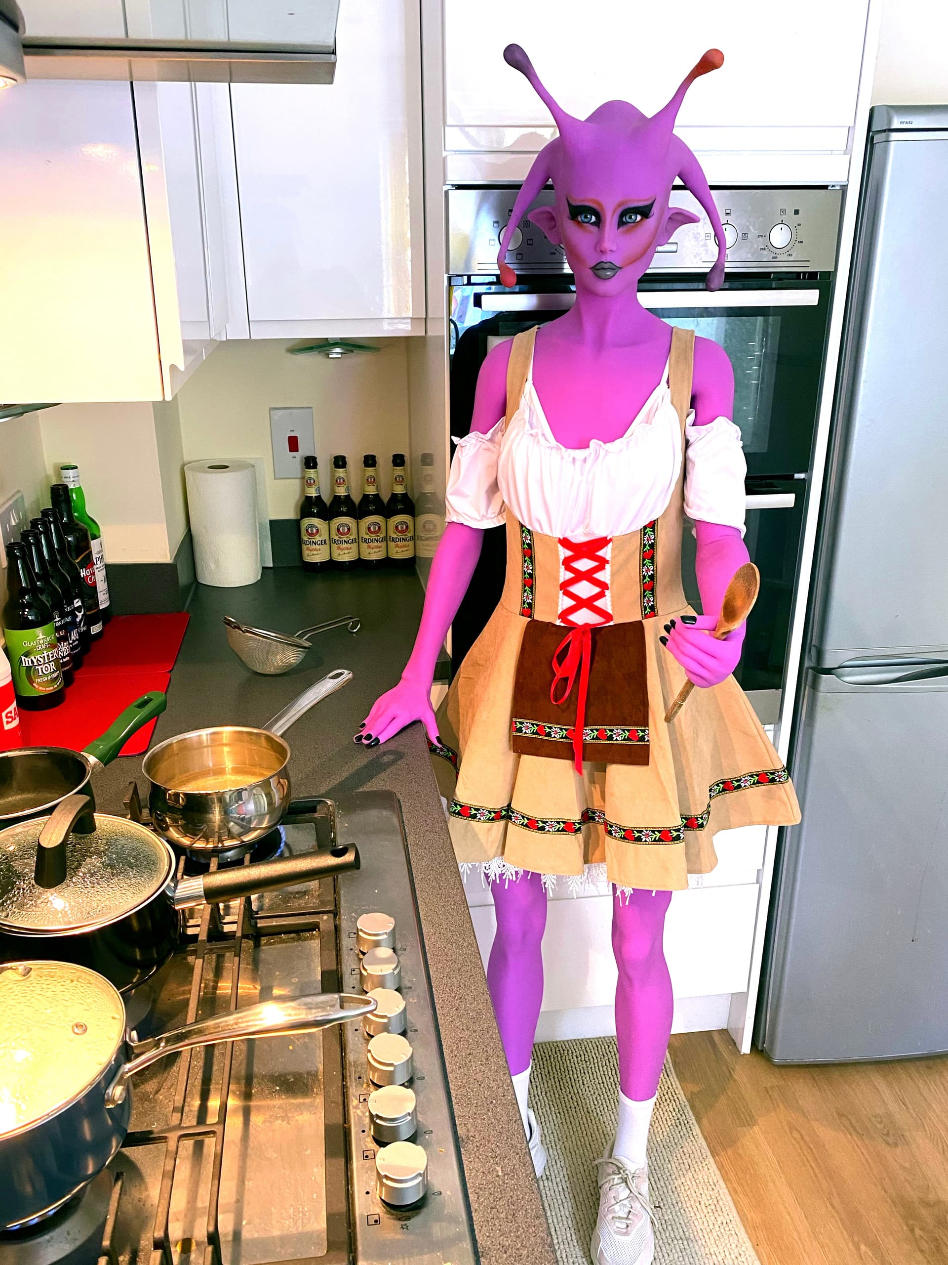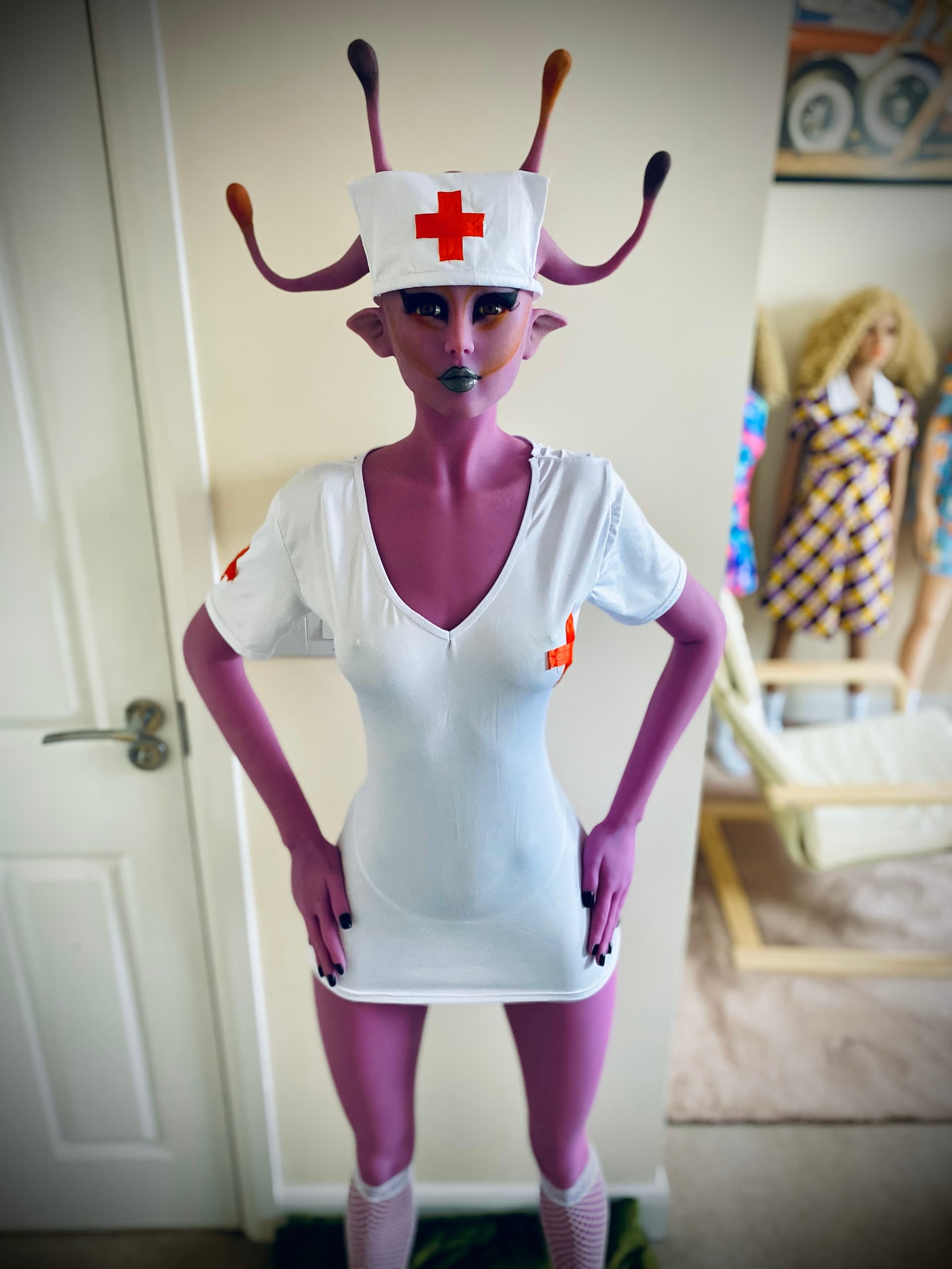 She wasn’t very impressed with her previous outfit - The Alien Cow (Ariel wanted the cow outfit, so I had to change Jayla into something else.)