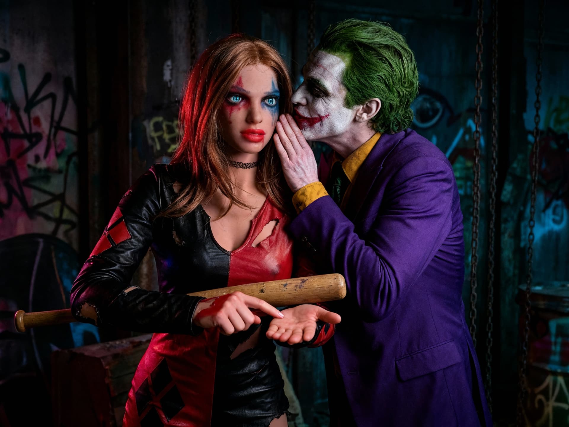 The Joker whispering evil nothings into Kim-Harley’s ear.
