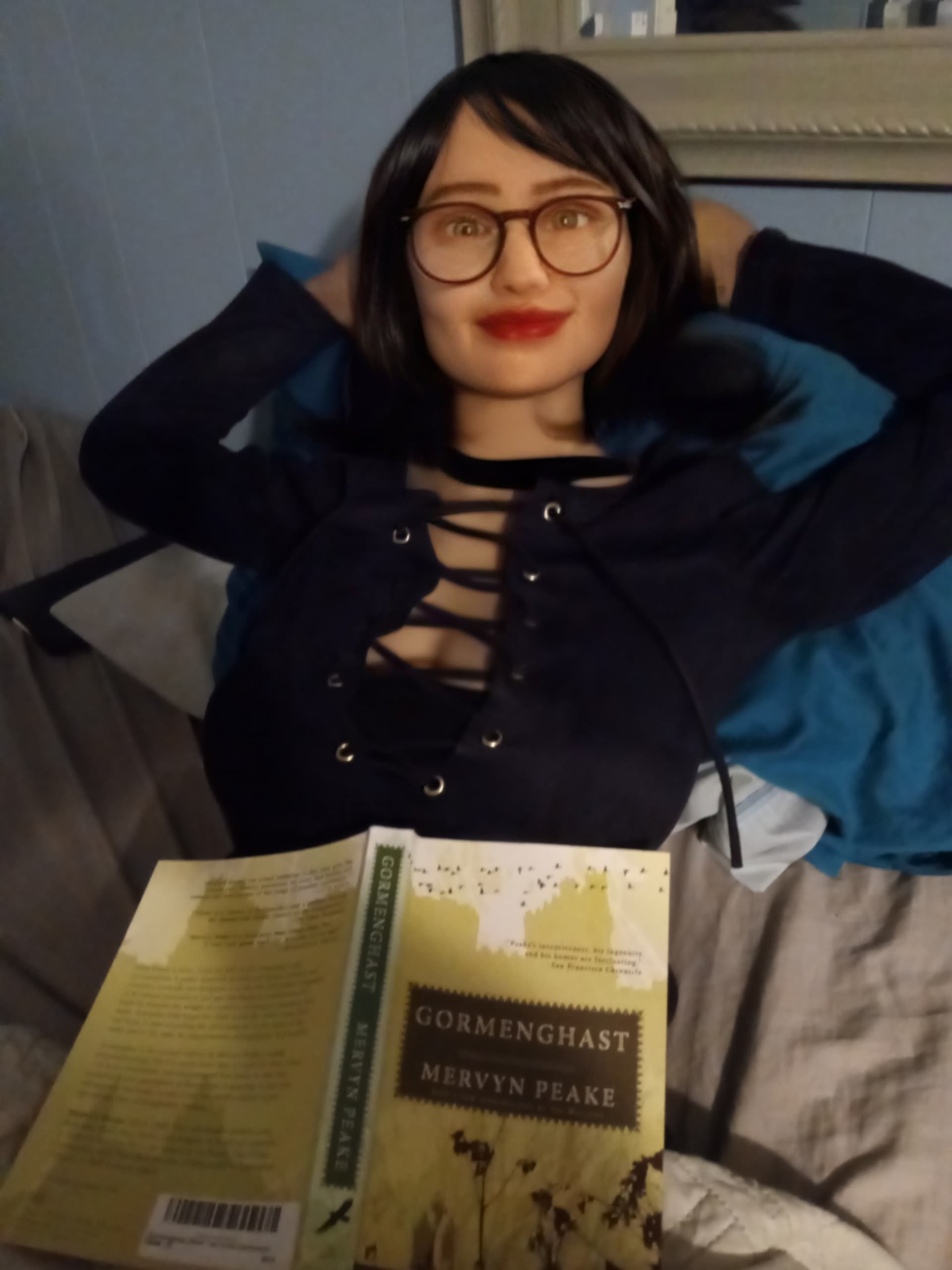 And here she is in the evening, after returning from Book Club.