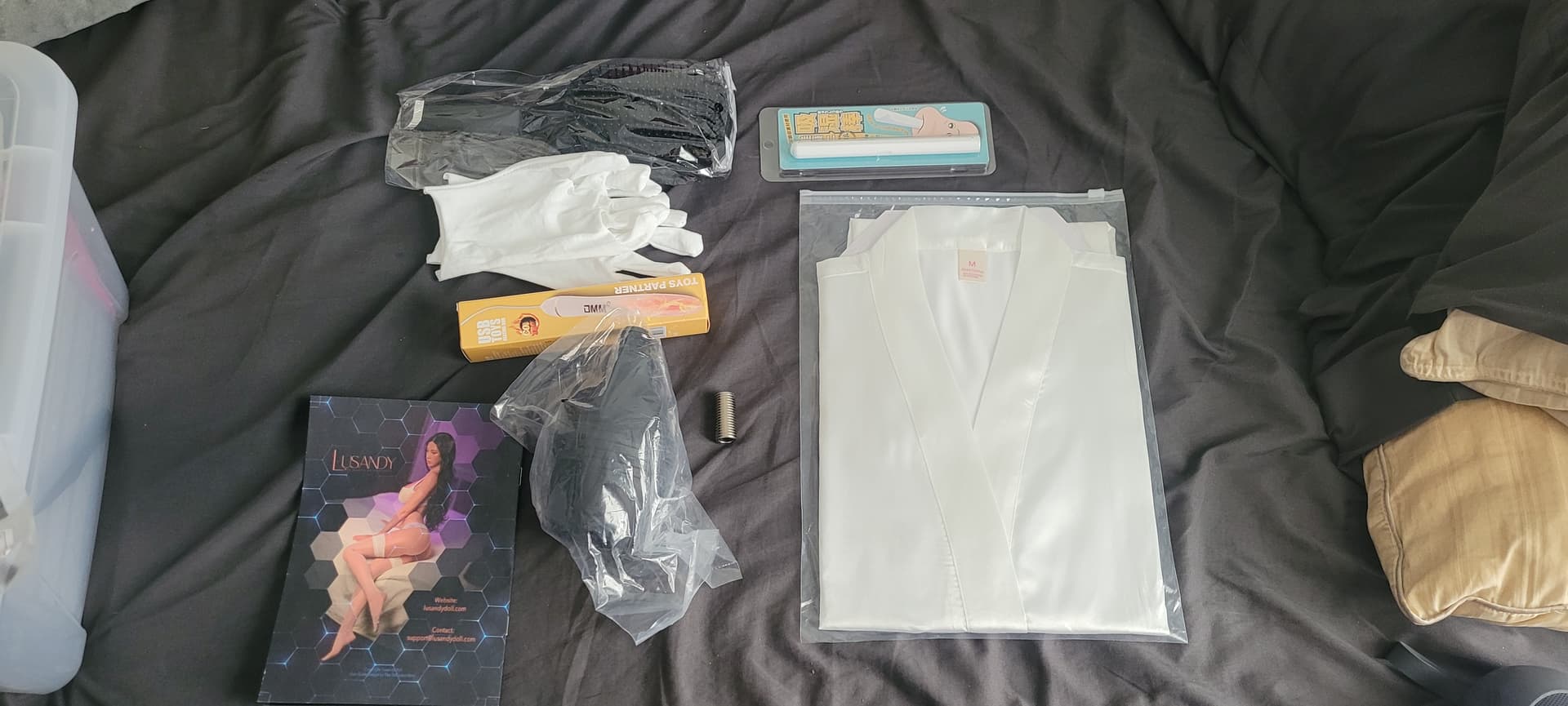 She comes with a pretty standard kit. The push to connect head bolt was in her at the time of taking this so it isnt included in the shot. The included robe is a much better idea than anything else I’ve had included with a doll. It feels nice to the touch and is very practical.
