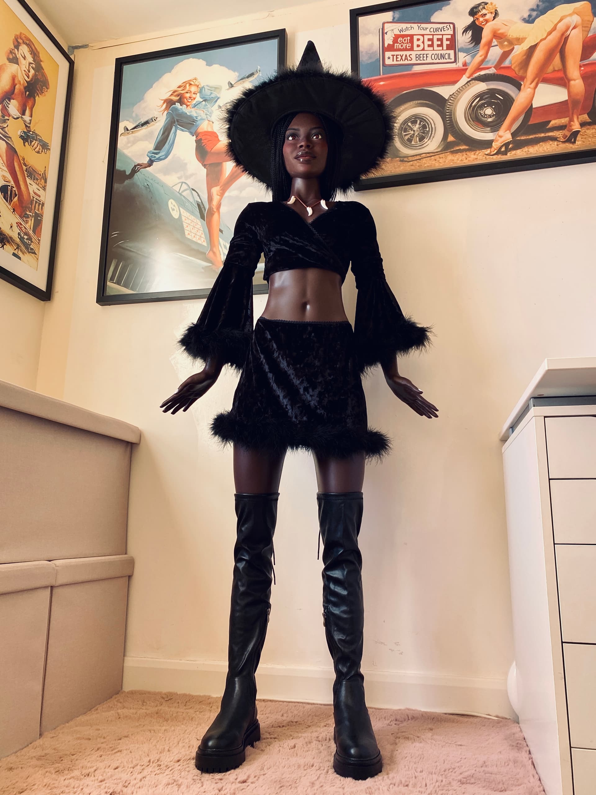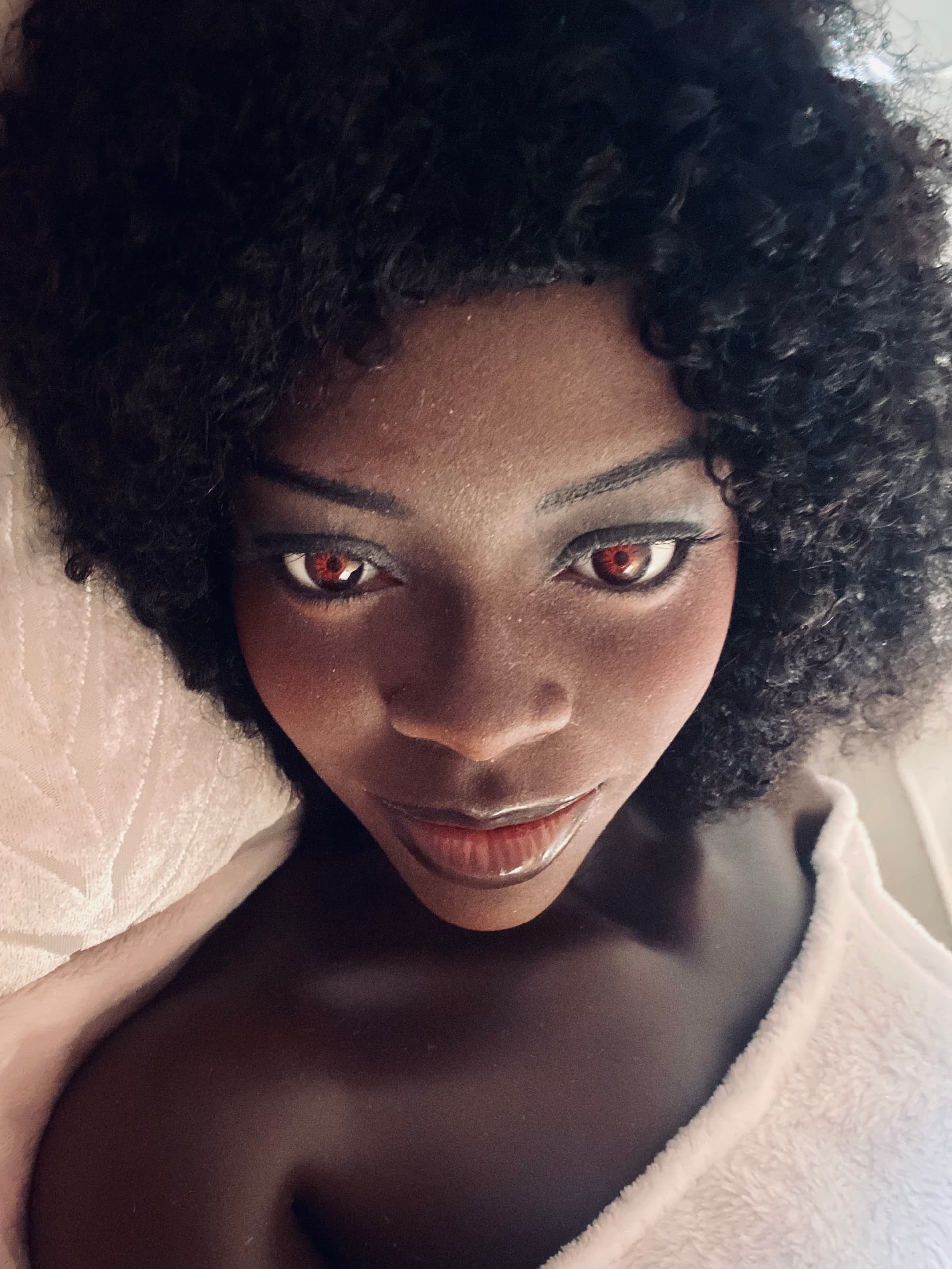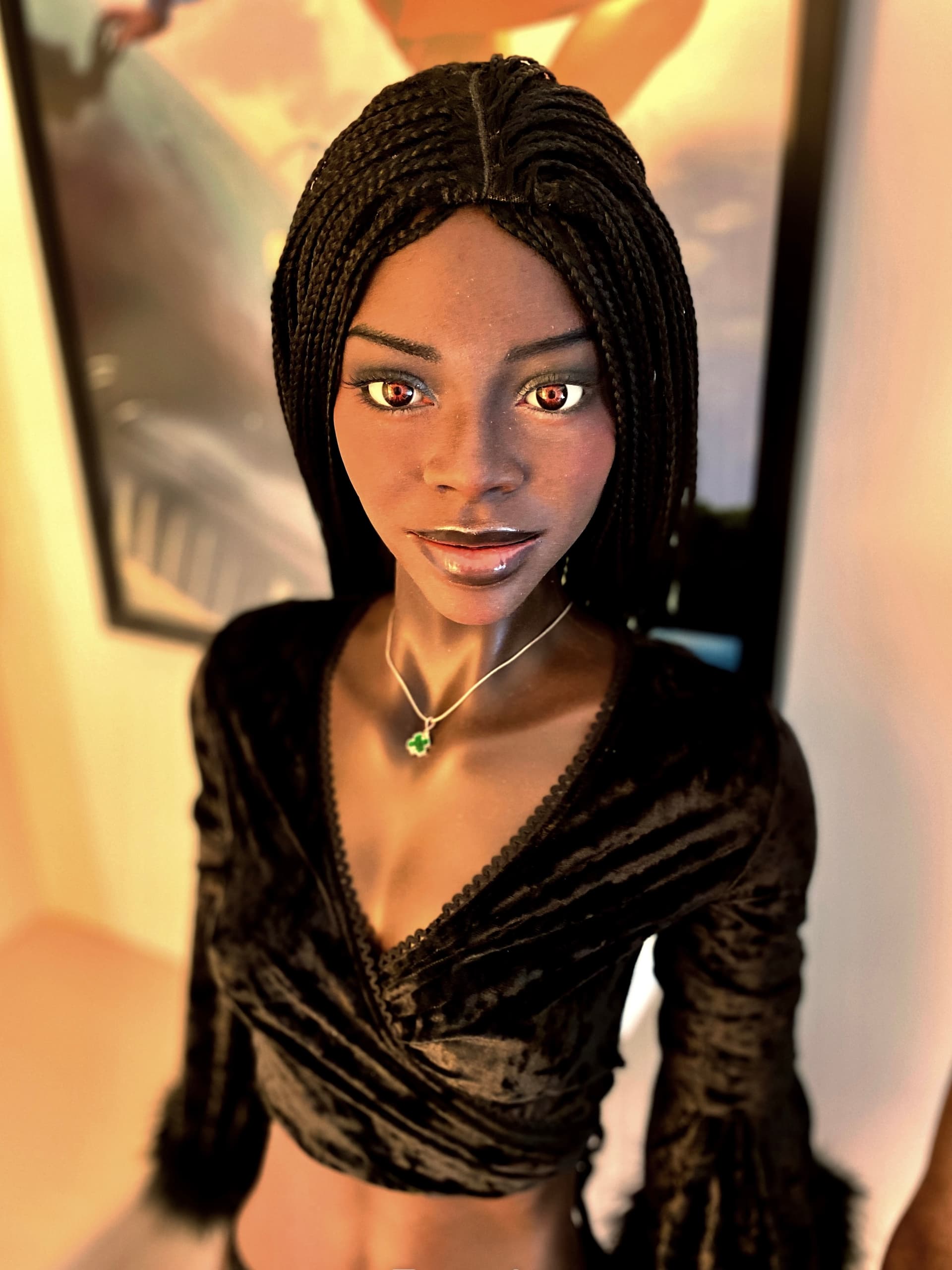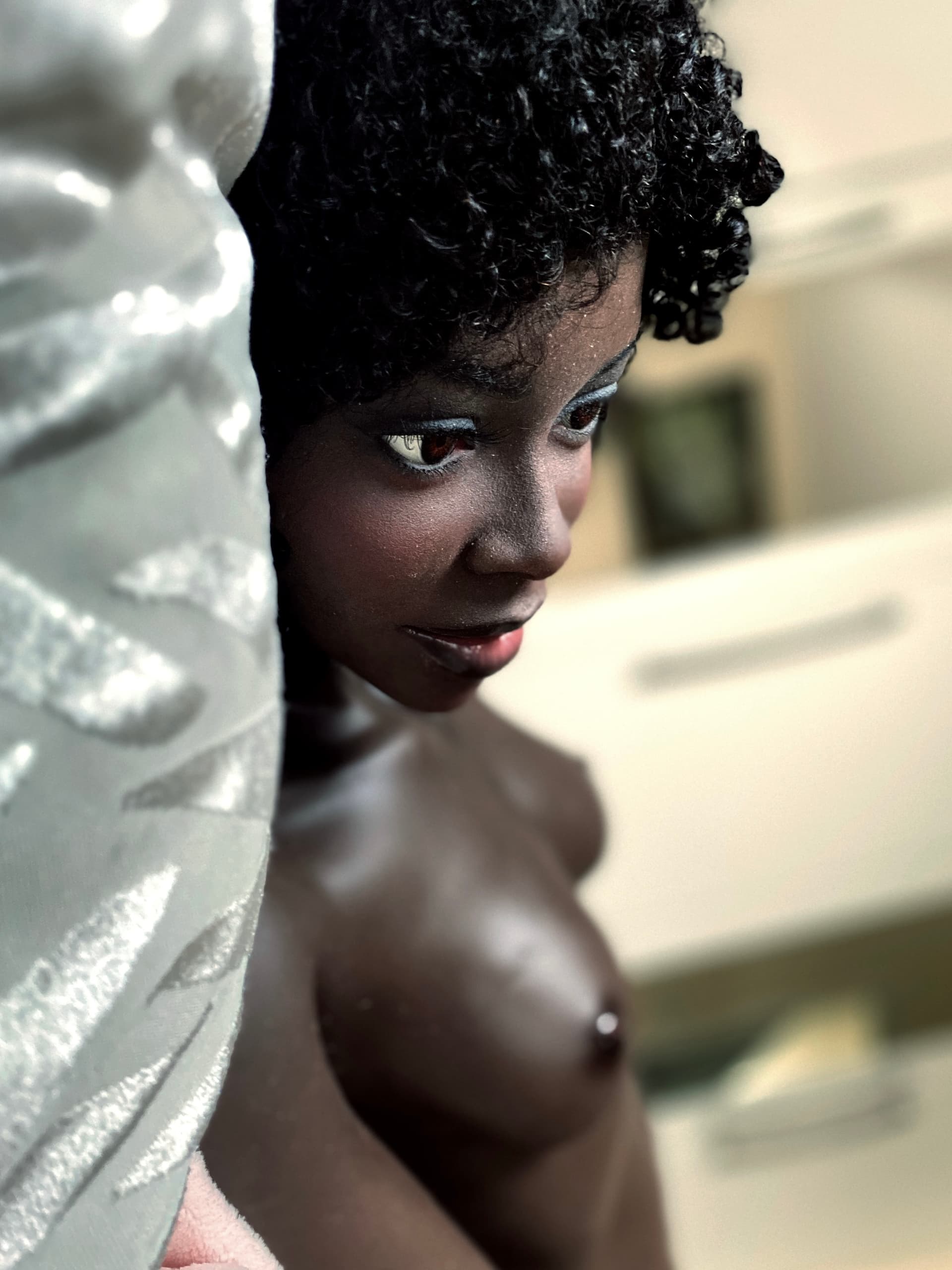 Naomie was a one off for me. I’d always wanted a black doll but could never find the right doll face. I’m a big fan of Fatima Diame. And I knew SM Doll did black dolls (I’d seen a black TPE SM doll which I mistakenly thought was silicone.) And I liked the SM156A. And SM Doll do customized heads. So I asked Star @ SM Doll for a custom head in the likeness of Fatima Diame on the SM156A in black silicone. The colour was custom too but is now a standard SM Doll colour (their first production was too light brown for me). Creating a custom doll face was expensive but worth it to realize a dream ![]()