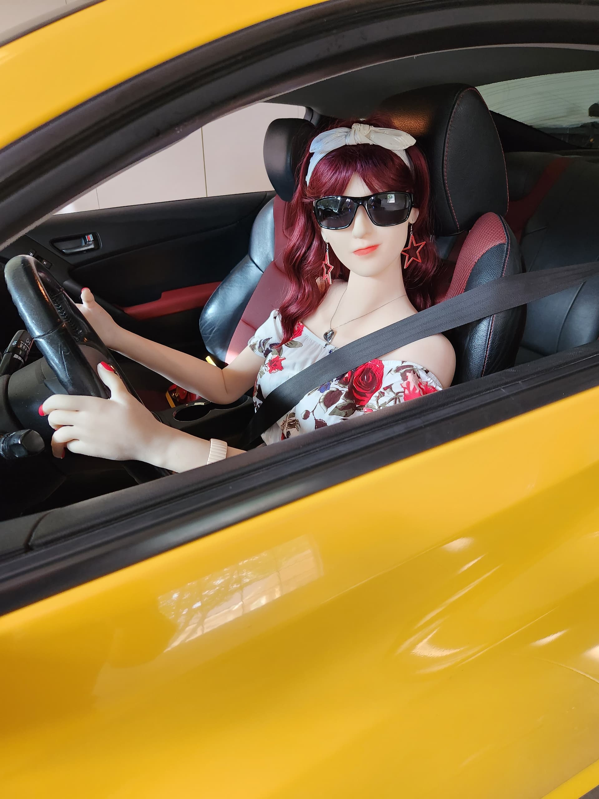 I live in a rural area. Mostly older folks such as myself. Iâve done shoots with my plush gals on our property, but never in a public setting. Although, I have taken them for top down drives around the community. Always lots of waves and smiles. Only problem is, they always insist on driving⌠![]()