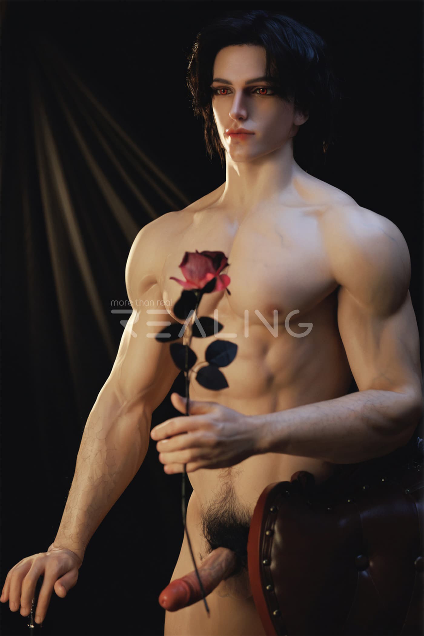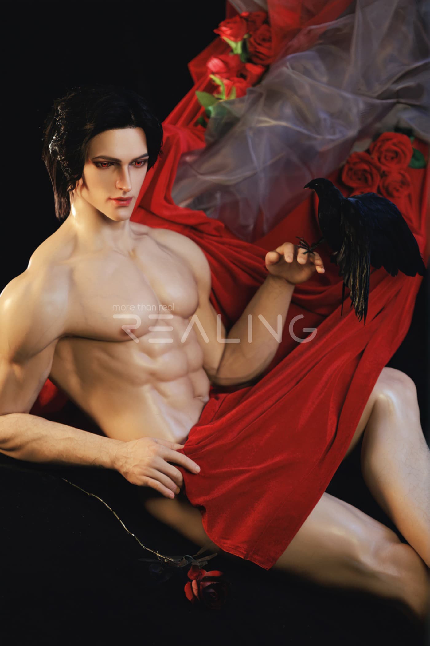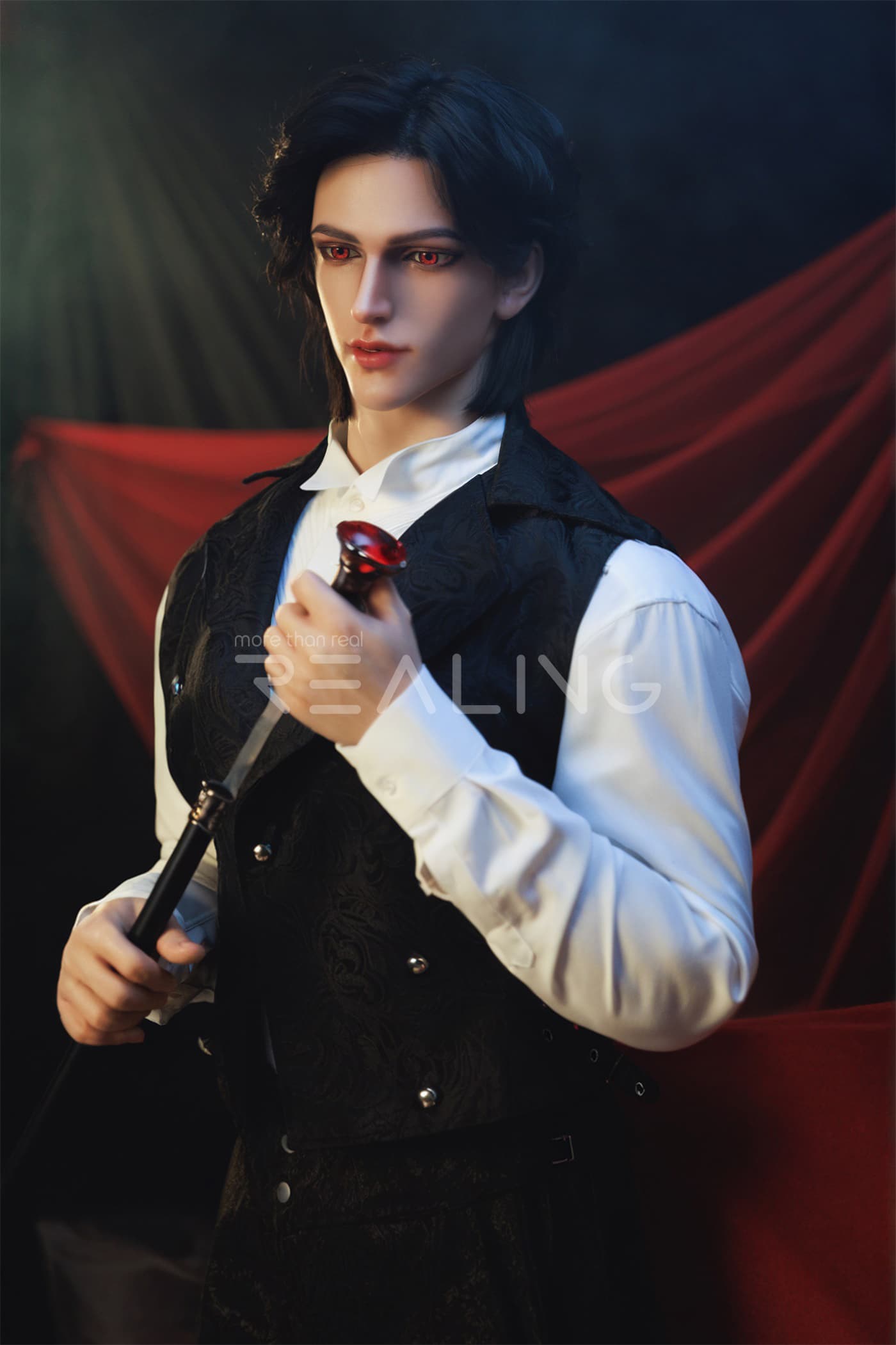 Today, I will introduce to you two more adult silicone dolls from Realing, which are also highly distinctive and realistic silicone dolls. Next, let’s take a look at the male adult silicone doll Miach that is going to be featured today. This Miach is 180cm tall and is dressed in a dark knight outfit, looking extremely handsome!