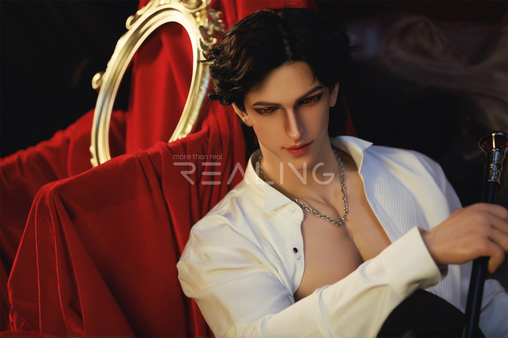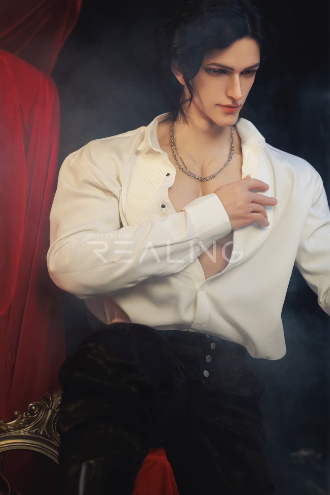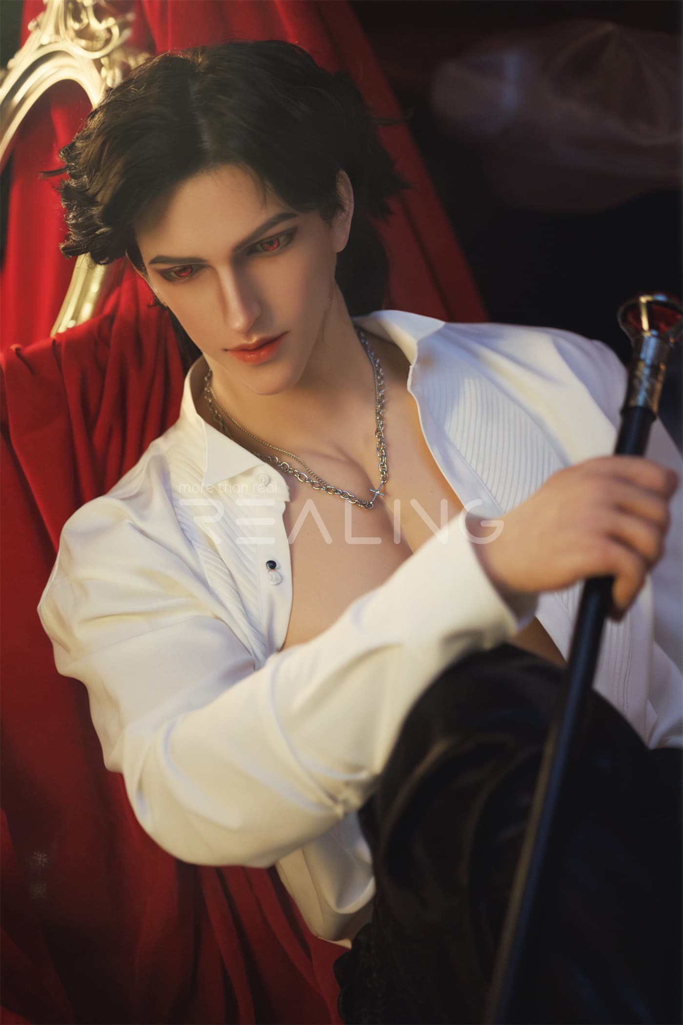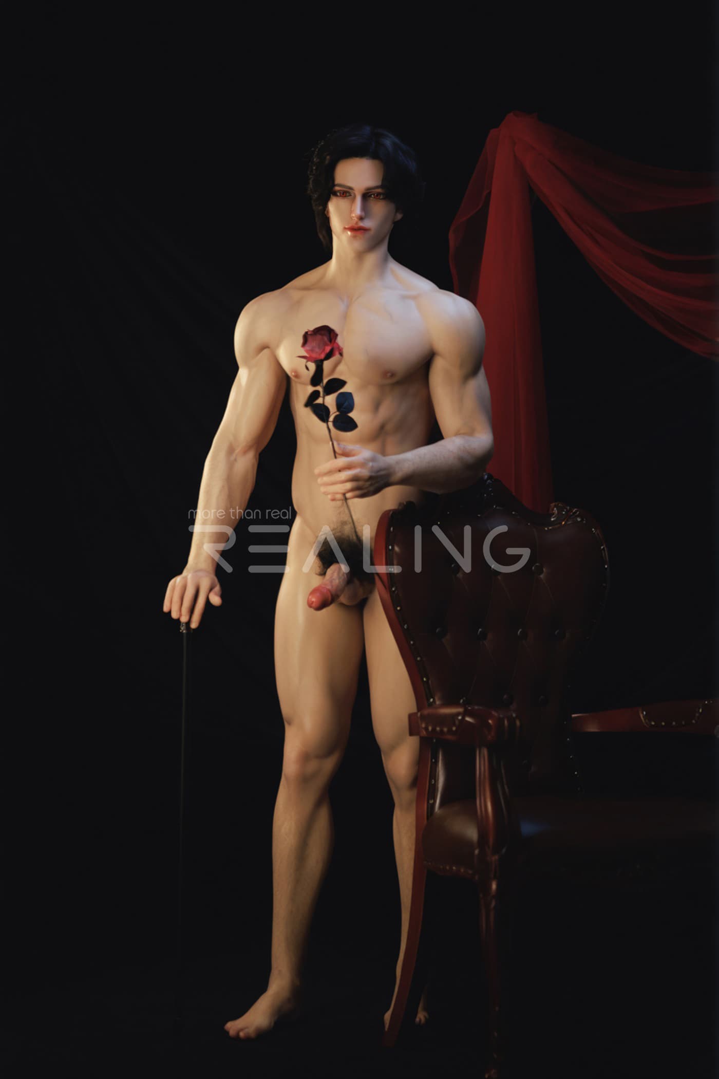 Today, I will introduce to you two more adult silicone dolls from Realing, which are also highly distinctive and realistic silicone dolls. Next, let’s take a look at the male adult silicone doll Miach that is going to be featured today. This Miach is 180cm tall and is dressed in a dark knight outfit, looking extremely handsome!