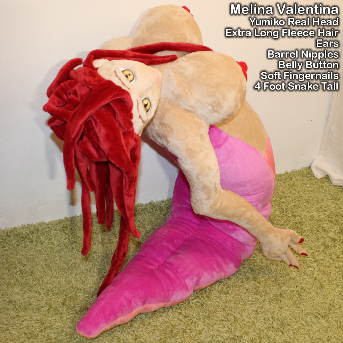 She has a Melina upper body with Natalina hips, a 4 foot snake tail, and a Yumiko real head.