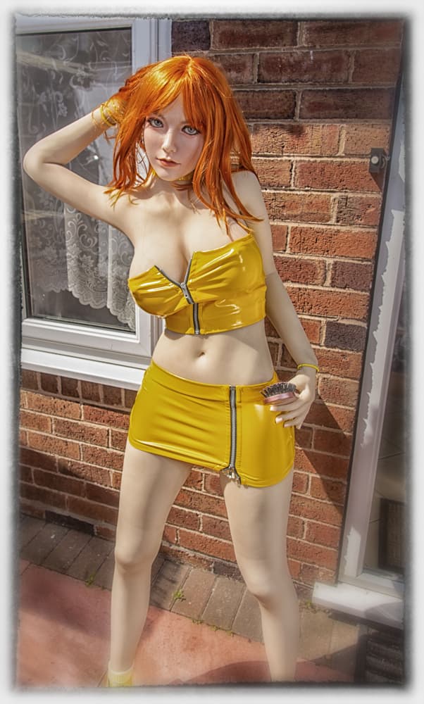 ), or go into my own kitchen. I was told to go and sit down somewhere, out of the way! which I did for a short while, in a sulk… then I had a better idea…In a little bit of a huff, I went to get Gemma, she was already stood naked in the hallway from when I had cleaned her… I stomped back through the kitchen with Gemma and took her outside, then in no time I was back in again to get my camera, I returned a third time to get the umbrella whilst trying to avoid any flying objects hurled at me across the kitchen. No sooner I was outside, I was called back in to help dish up.
