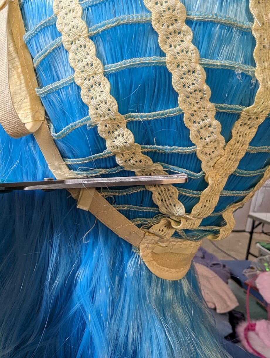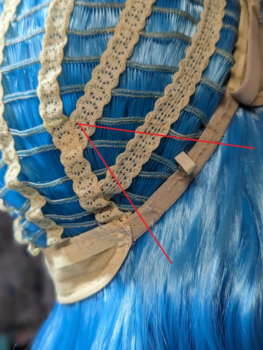 I ran two seams on this particular wig. This one is Serenity’s wig. I have done a single (larger) seam on another wig. Devina’s wig has the single seam.
