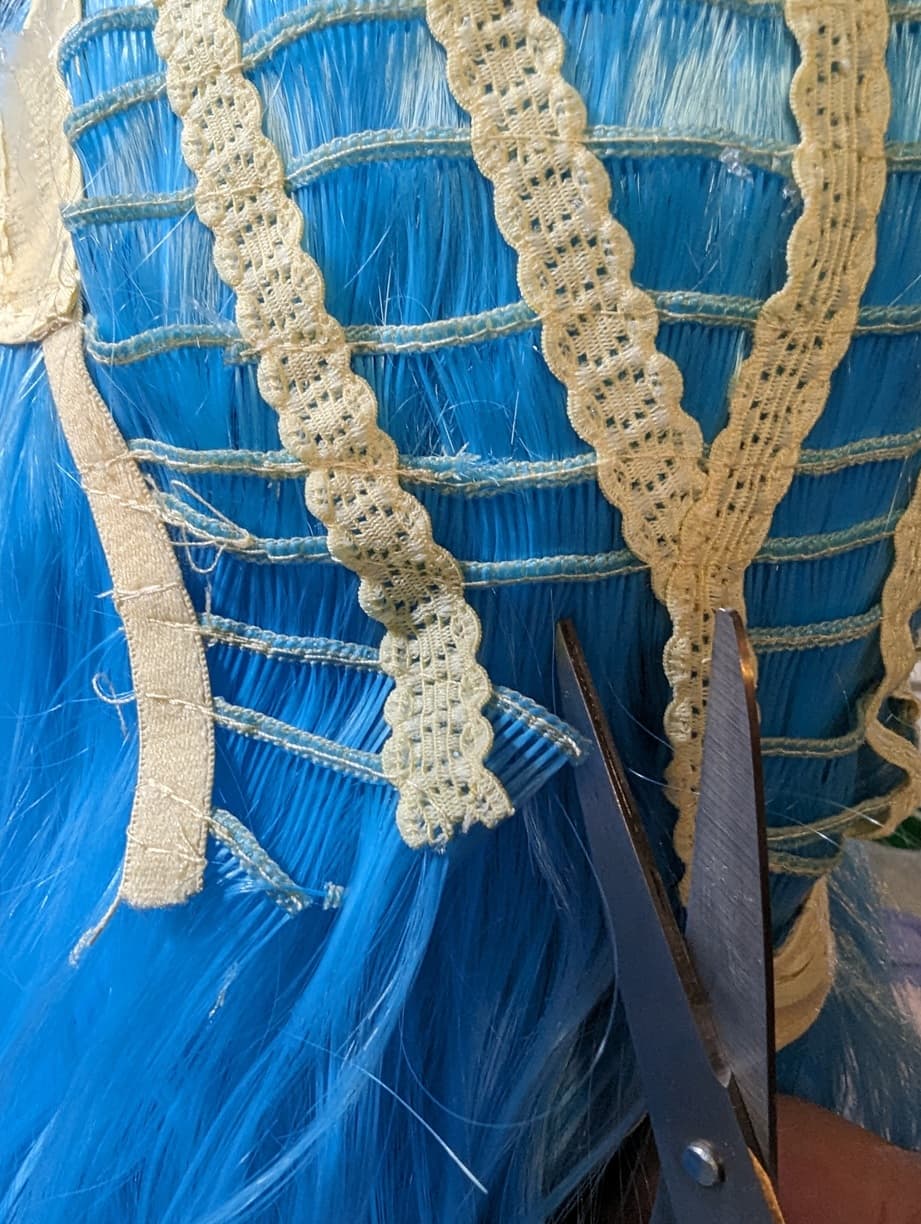 I basically cut out two sections on either side of the wig, and resew.