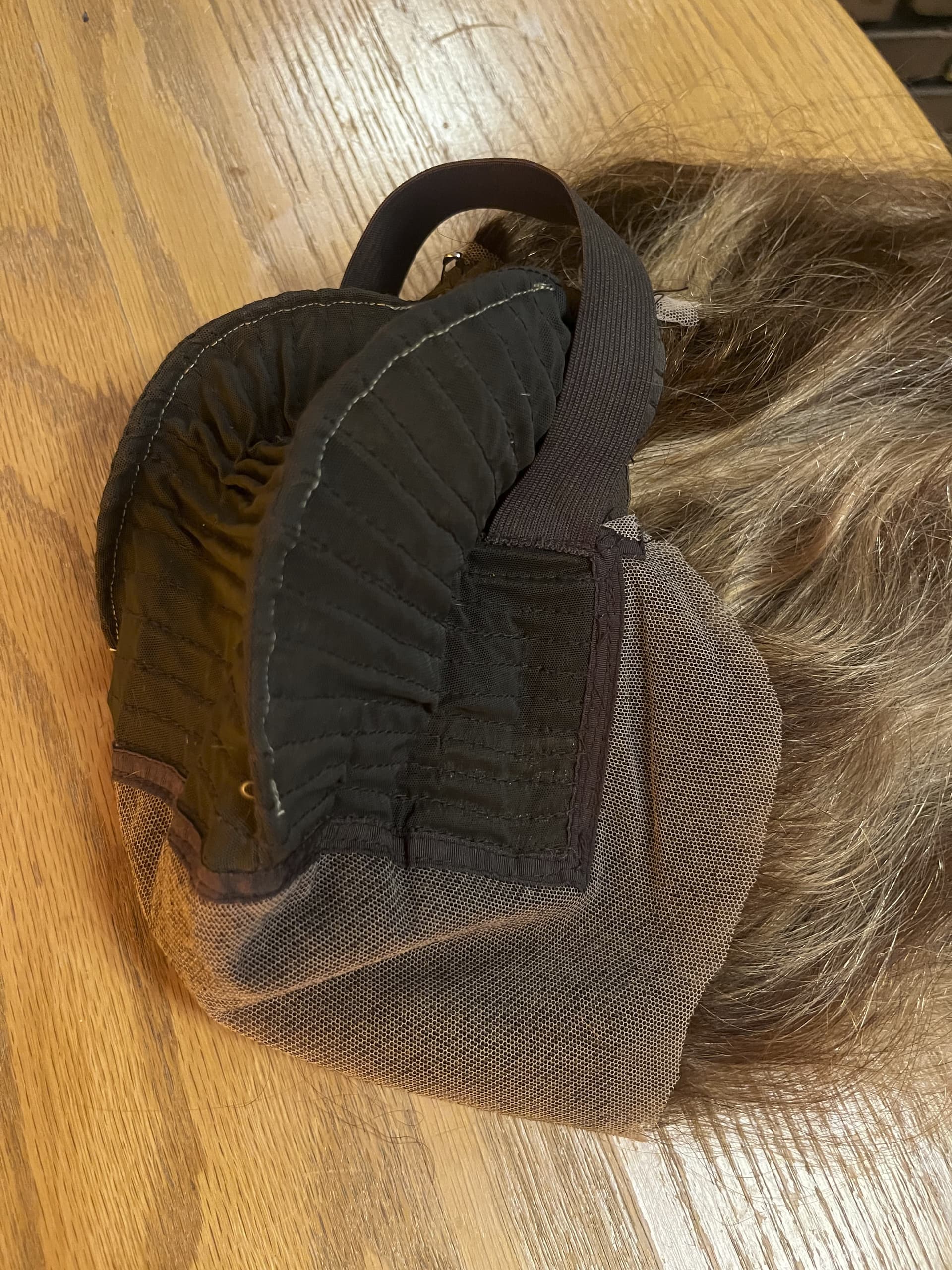 With the wig turned inside out, I want to remove this section on each side: